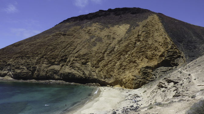 Die heutige Tour führt zu einem Strandabschnitt, vor dem die Lavamassen der Neuzeitausbrüche gerade noch rechtzeitig Halt machten. So konnten sich so genannte »Isolotes« - Inselchen - bilden. Das sind Landstücke, die nicht von dem Material der Neuzeitausbrüche bedeckt wurden. Der Strand liegt westlich von Tinajo im Norden von Lanzarote. Er wird sehr selten besucht. Der schwarze Lavasandstrand ist ca. 50 m lang und 25 m breit. ǀ Der Strand ist gut erreichbar. Zugang: Pkw Fahrt und kurze Wanderung ǀ In einem natürlichen Wasserbecken kann man sich abkühlen. Baden ist nicht möglich. ǀ Verschiedenes: sehr romantisch, sauberer Strand und sauberes Wasser, teilweise Schatten, nicht mit dem Buggy erreichbar, FKK möglich, Hunde nicht erlaubt, kein Rollstuhlzugang vorhanden ǀ keine: Toiletten, Duschen, Sonnenstühle, Sonnenschirme ǀ Aktivitäten: wave watching ǀ
