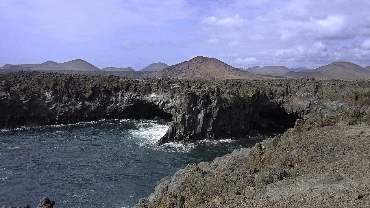 Los Hervideros beschreibt den Küstenstreifen zwischen El Golfo und den Salinas de Janubio im Südwesten von Lanzarote. Bei den Vulkanausbrüchen zwischen 1730 und 1736 trafen die Lavaströme auf den Atlantischen Ozean. Durch das rasche Erkalten der Lavaströme und die ständige Erosion der meterhohen Atlantikwellen, die sich täglich mit Urgewalt in die schroffen Felsen bohren, entstand eine neue, zackige und schroffe Küstenlinie mit einer durchschnittlich 10 m hohen Steilküste. Sie ist geprägt von tiefen Einschnitten und Löchern, in die jede Welle hineingedrückt wird und so meterhohe Wasserfontänen hervorbringt. An Stellen, wo die Küste grottenartig zerklüftet ist, hört man das Zischen der kochenden Gischt. Tipp: Besuchen Sie diesen Aussichtspunkt kurz vor Sonnenuntergang. Die Belohnung ist ein extrem kontrastreiches Farbenspiel. | Siehe Wanderung 59: LAGUNA DE JANUBIO LOS HERVIDEROS |