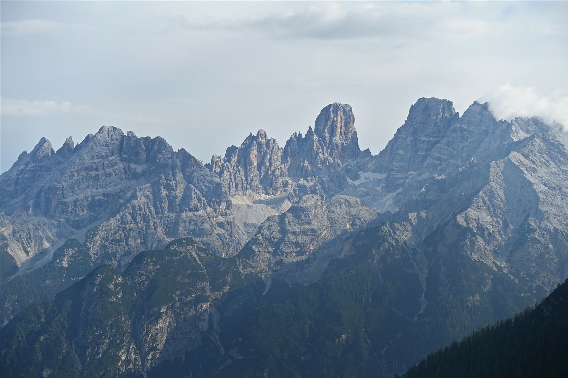Dolomiten-Höhenweg 3 - von links der 2469 m hohe Sasso di Bosconero der 2430 m hohe Sasso di Toanella und der 2412 m hohe Rocchetta Alta