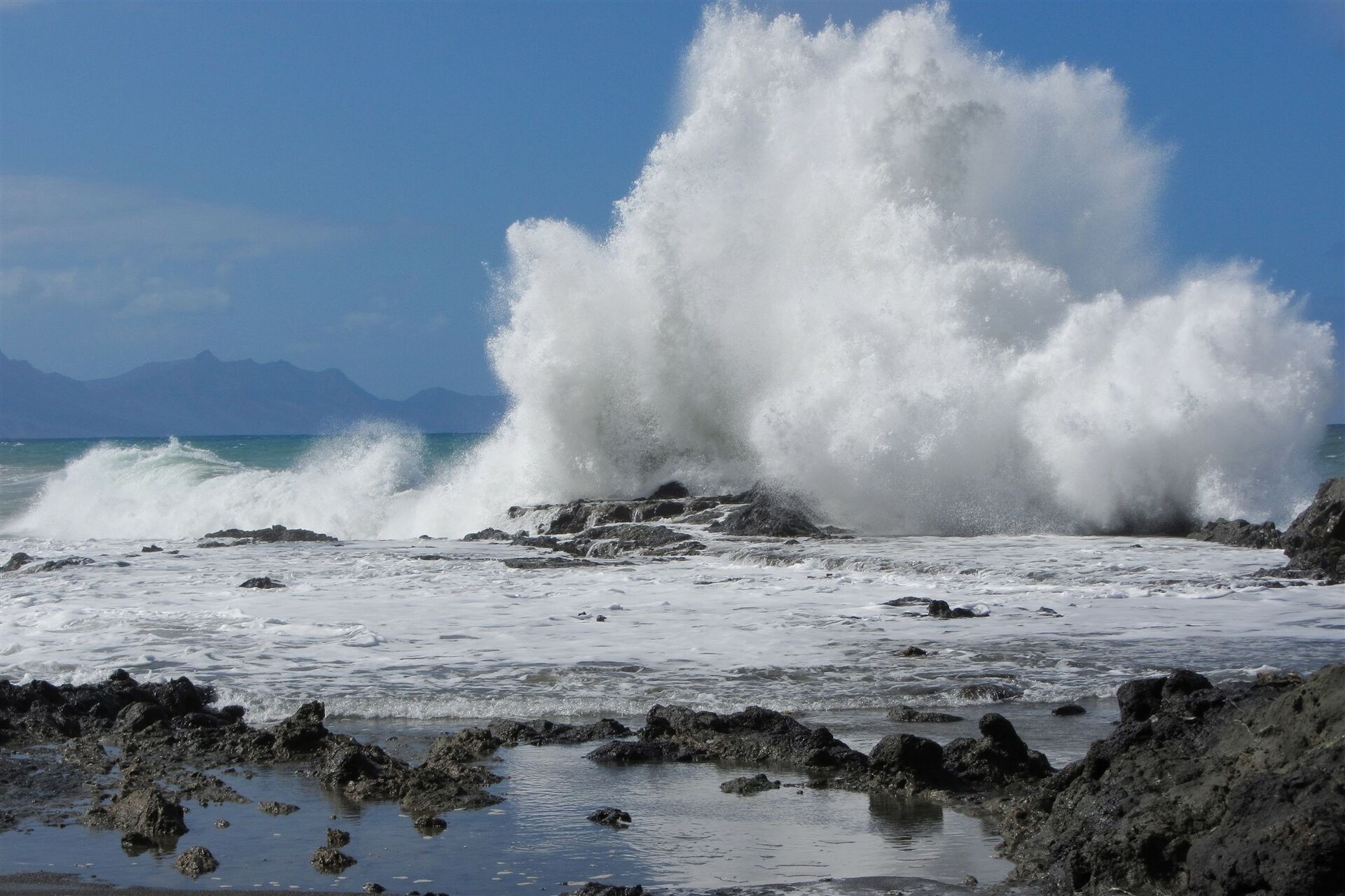 Fuerteventura - riesige Wellen brechen sich an der felsigen Küste