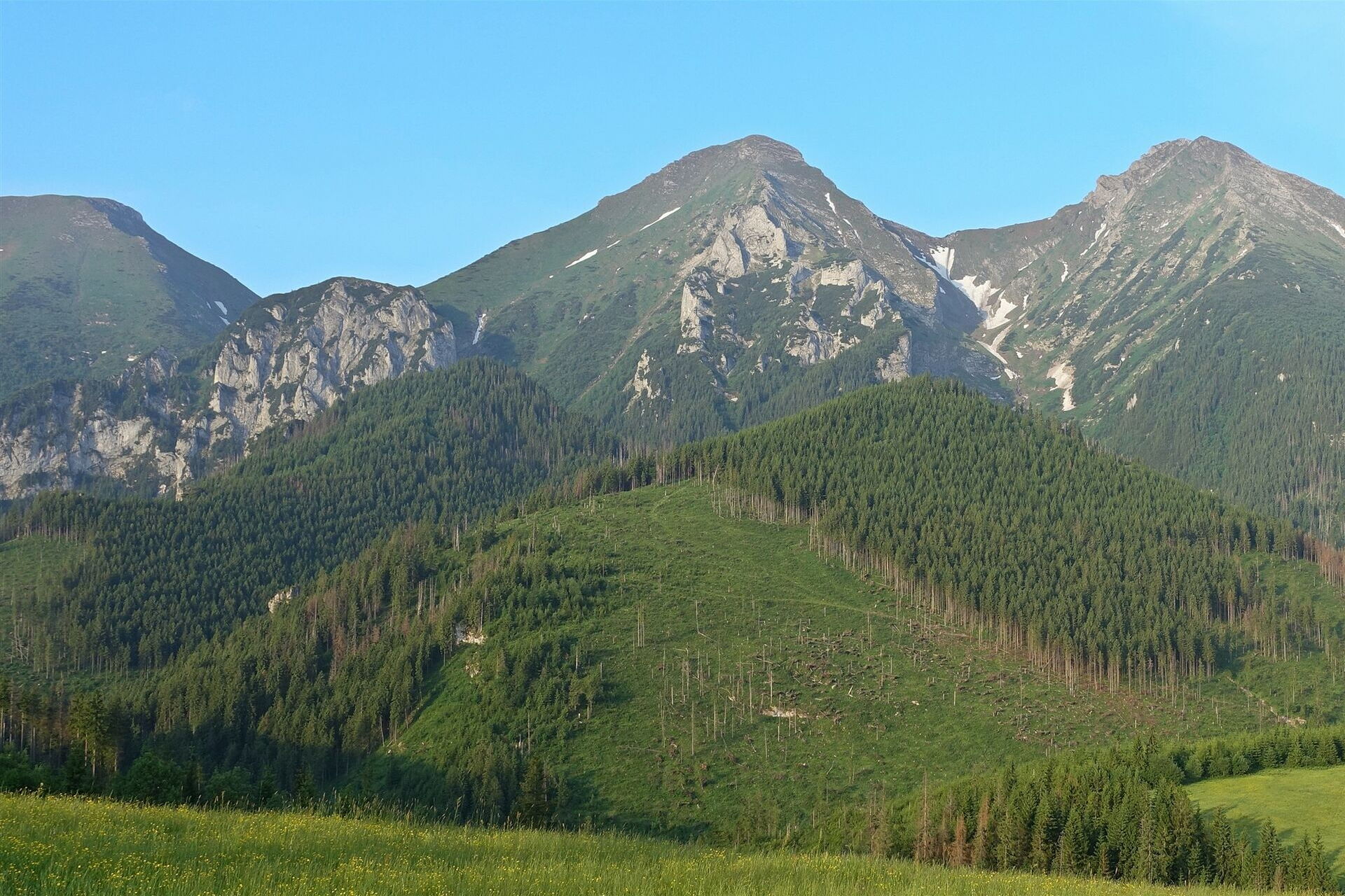 Hohe Tatra - Belaer Tatra und der 2142 m hohe Ždiarska vidla (links) und der 2152 m hohe Havran