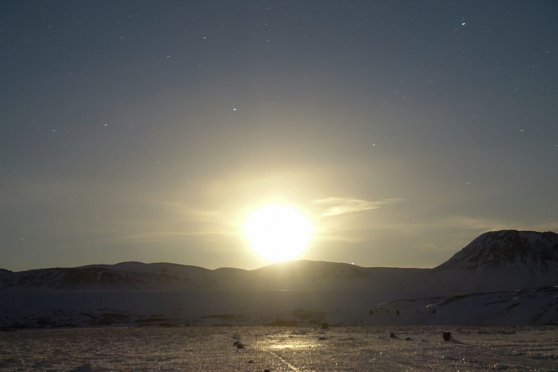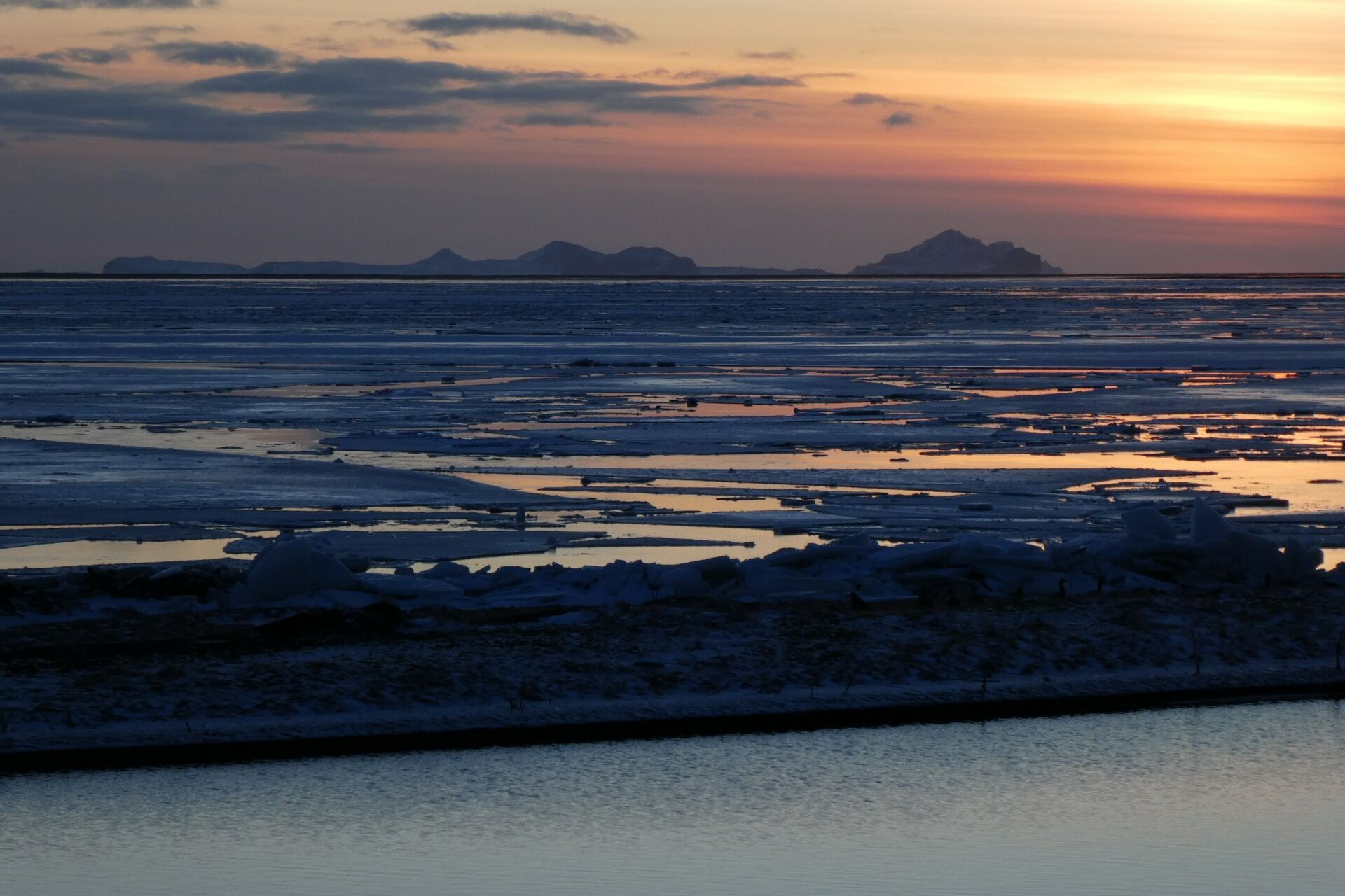Island – Sonnenuntergang bei den Afternoon Cottages.