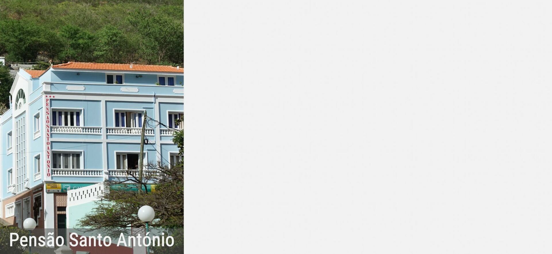 16.616017 -24.298150 | Die Pensão Santo António ist die beste Unterkunft der Inselhauptstadt Ribeira Brava. Die Zimmer verteilen sich über 3 Etagen, sind klassisch eingerichtet und verfügen über einen sehr guten Standard. WLAN ist kostenfrei im Frühstückszimmer. Das Frühstücksbuffet ist köstlich, besonders die Smoothies aus dem heimischen Garten. Man spricht ausschließlich Portugiesisch. Die Unterkunft liegt strategisch gut für Wanderungen in den nördlichen sowie östlichen Regionen der Insel. | €€ | Vila da Ribeira Brava, 3120 São Nicolau | Facebook | Webseite | E-Mail | Tel.: +2382352200 | Mobiltelefon + 2389934284 | siehe Touren 48–54 |