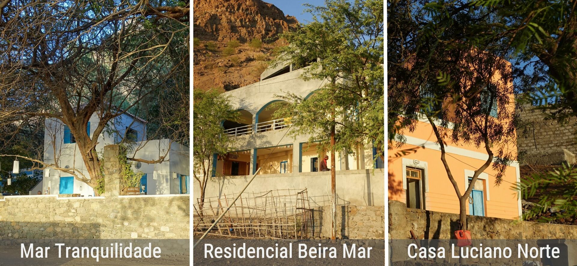 17.202917 -25.093433 | Der Kapverdische Familienbetrieb Residencial A Beira Mar liegt direkt am Hafen. Die zehn einfachen Zimmer verfügen über Bad, Terrasse und mindestes seitlichen Meer- und Hafenblick. | € | Rª Grande / Ponta do Sol | residencial.abeiramar@gmail.com | Tel.: +2382251008 | zu buchen unter http://www.ruraltours.cv | siehe Tour 20 |