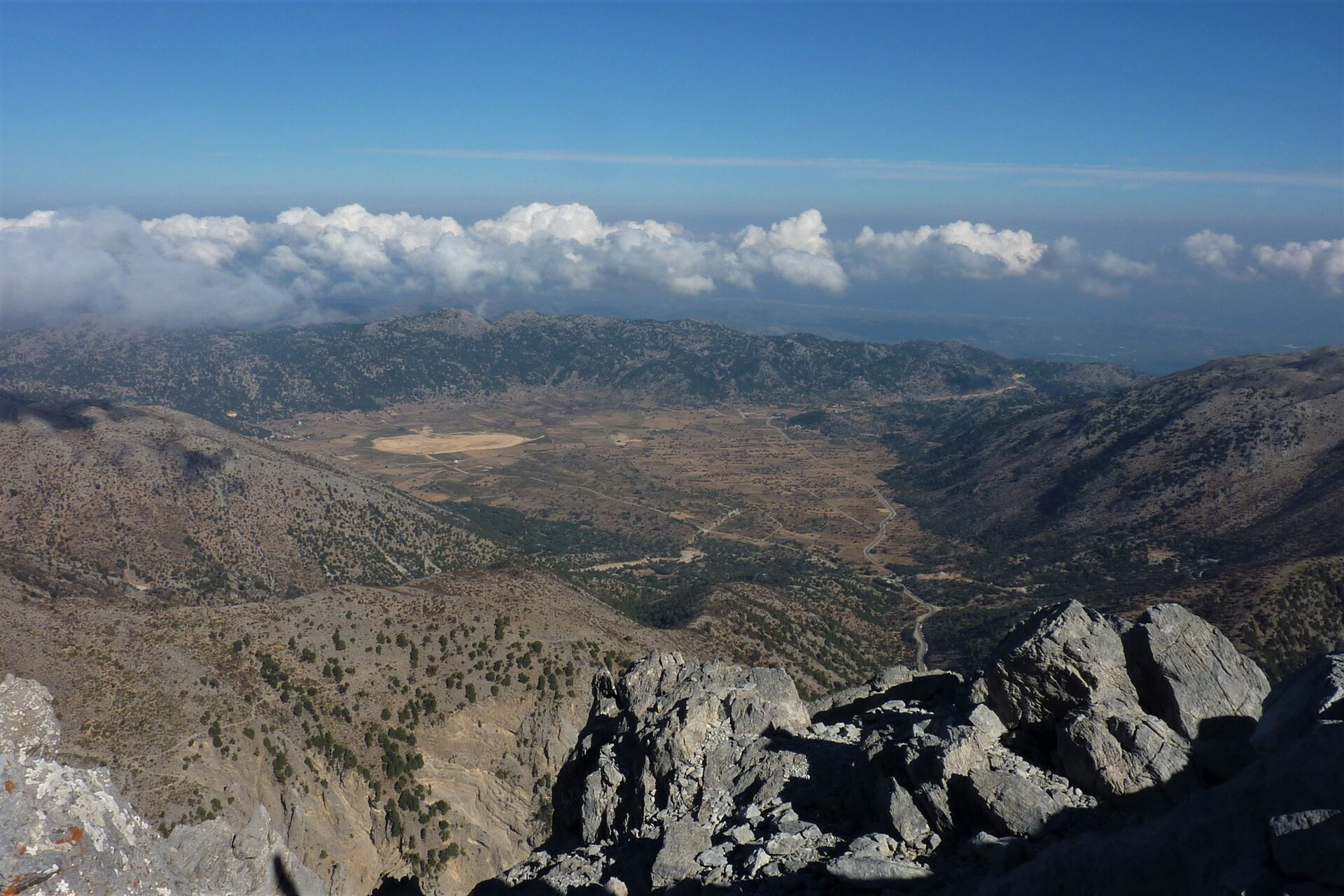 Kreta Fernwanderweg E4 - Blick aus der Vogelperspektive auf die Hochebene von Omalos