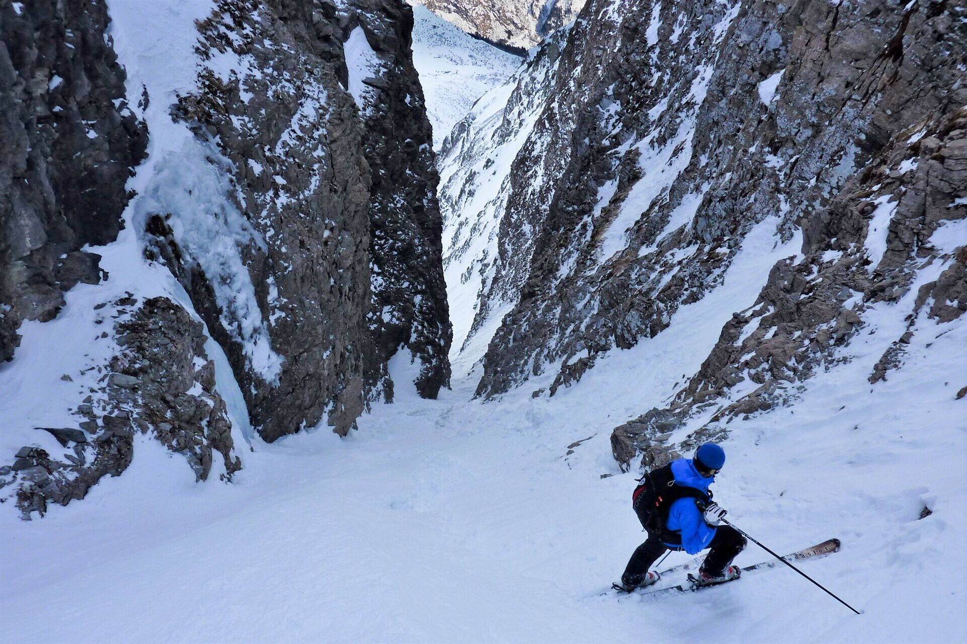 Variantenabfahrten - vom Passo Zube durch das 5 m breite Gichetti Couloir oberhalb von Alagna