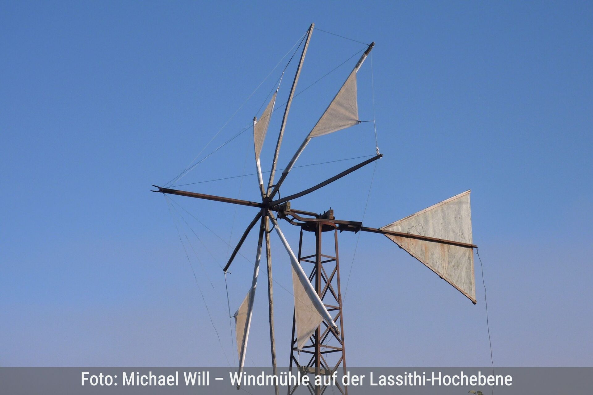Heute erwartet uns eine geballte Wanderleistung von ca. 20 km und nur 300 Höhenmeter im Aufstieg. Es werden keine besonderen technischen Anforderungen benötigt, auch ist die Orientierung im Gelände einfach. Der Tag ist dafür gespickt mit archäologischen Schmankerln, Kraftorten und Naturschönheiten. Langeweile kommt auf gar keinen Fall auf. Ein weiteres „Highlight“ ist die Lassithi-Hochebene. In der Vergangenheit pumpten auf dieser Ebene Tausende von Windmühlen das reichlich vorhandene Grundwasser an die Oberfläche. Das wurde zur Bewässerung genutzt. Heute erledigt diese Arbeit elektronische Pumpen. Von den Windmühlen stehen nur noch die rostigen Gerippe. | Siehe Wanderung 08 |