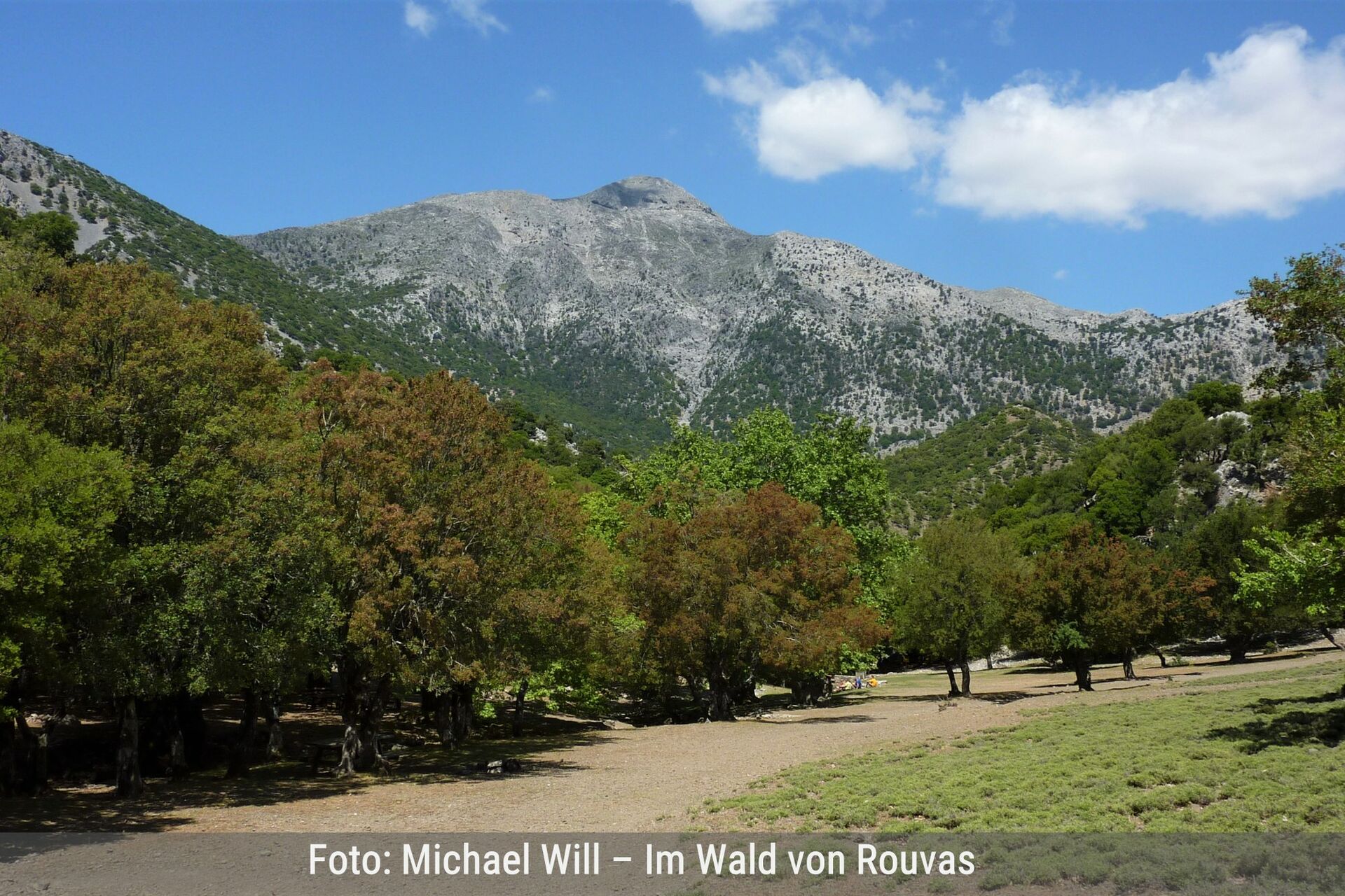 Die anspruchsvollste Tour dieses Wanderführers fordert alles von uns: Dauer ca. 9 Stunden, Strecke ca. 20 km und ca. 1300 Höhenmeter bergauf. Besonders beeindruckend ist am Wegpunkt 03 ein Talboden mit einer Quelle, gelegen zwischen riesigen Plantagen und auf einer Hochebene mit Europas größten Kermes-Eichenwald, der sogenannte Rouvas-Wald. Ein weiteres Naturschauspiel ist dann die Nida-Hochebene. Die Anspannung aufgrund der Wegfindung und der Einteilung unserer Kondition fällt von uns ab und wir nehmen Geräusche, Bilder und Gerüche bewusst war. Auf dieser Tour kommen wir wahrhaft im Jetzt und Hier an. Die Belohnung alle Mühen sind die atemberaubende Berglandschaft und ein erhabenes Glücksgefühl, das Etappenziel geschafft zu haben. | Siehe Wanderung 13 |
