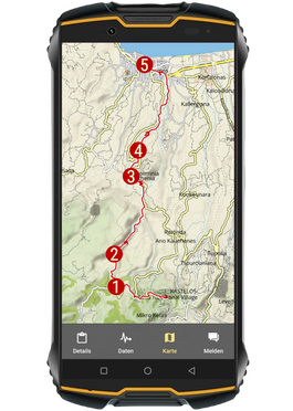 - Mithilfe von GPS-Navigation werden Sie alle Wege finden. Sie folgen den farbig hinterlegten Routen, dargestellt auf der Benutzeroberfläche Ihres Smartphones.