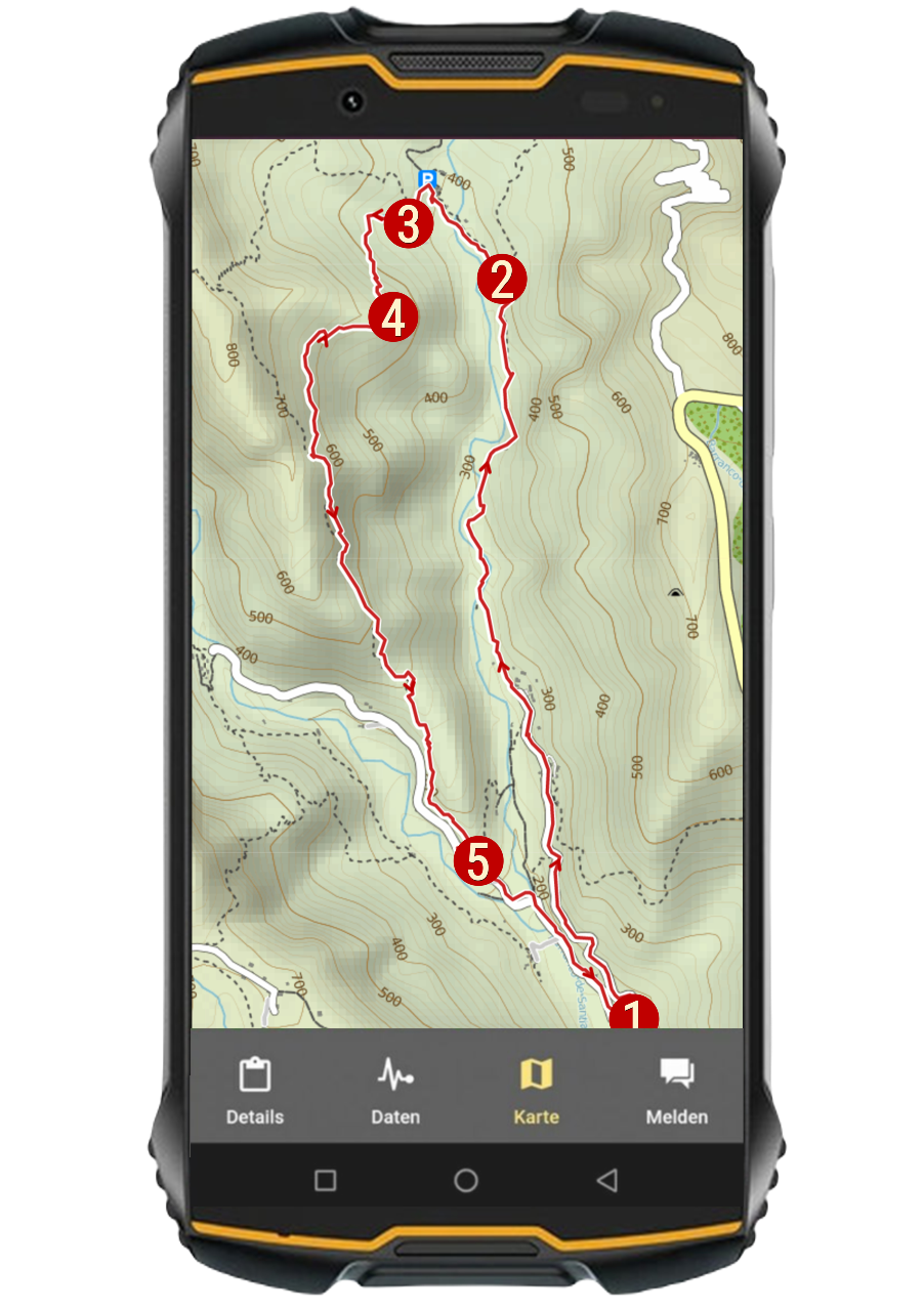 - Mithilfe von GPS-Navigation werden Sie alle Wege finden. Sie folgen den farbig hinterlegten Routen, dargestellt auf der Benutzeroberfläche Ihres Smartphones.