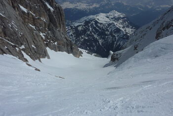 Kurze, aber spitzenmäßige Abfahrt durch eine Scharte, die an ihrer engsten Stelle nur 4 bis 5 m breit ist.