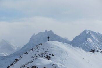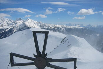 Längerer Aufstieg auf einen Aussichtsberg. Durch eine steile Scharte geht es zurück ins Skigebiet.