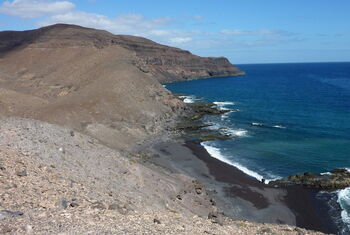 Nach einem kurzen Abstieg durch ein Barranco erreicht man den Strand, der zum Baden einlädt.