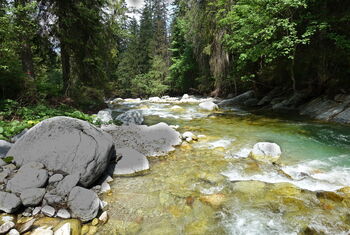 Durch ein malerisches Tal geht es vorbei an dem höchsten Wasserfall Polens