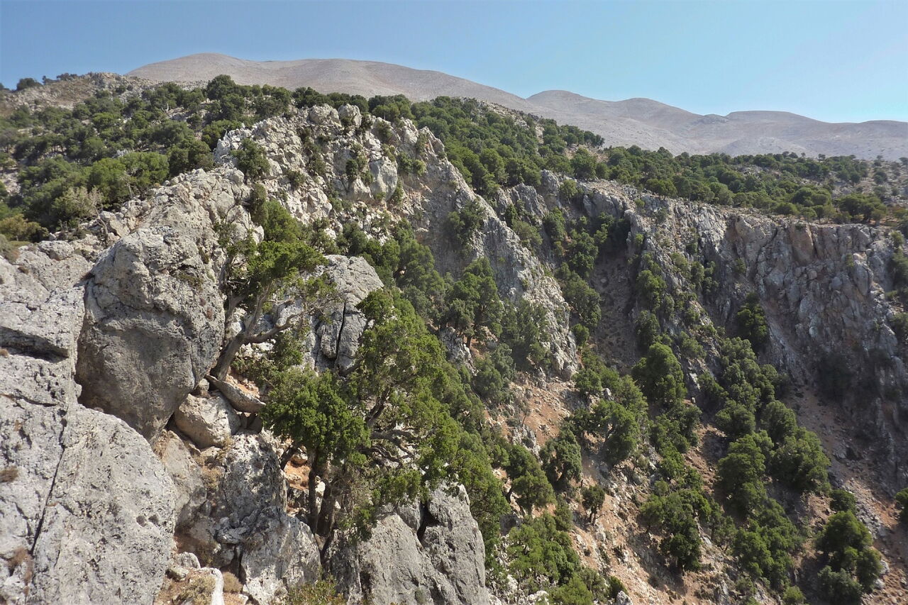 Heute machen wir neben dem Wandern noch eine interessante geobotanische Exkursion, denn wir durchlaufen drei Höhenstufen der Vegetation auf Kreta. Wir starten in der gerade noch alpinen Stufe mit Dorn- und Igelpolsterformationen. Dann gelangen wir schnell in die mediterrane Hartlaubstufe mit den immergrünen Eichenwäldern. Und schlussendlich tauchen wir ein in die Macchie, charakterisiert durch immergrünen Buschwald, der durch menschliche Eingriffe entstanden ist und durch Kultivierung auch erhalten wird. Dabei kommen wir an 800 Jahre alten Olivenbäumen vorbei. Schnell erreichen wir das Bergdorf Fourfourás am Fuße des Psiloritis. Wir erleben unberührte Natur mit allen Sinnen.