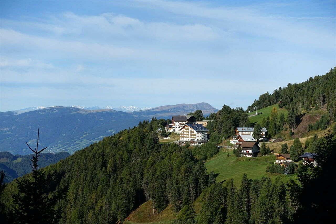 Von der 01 Bushaltestelle Afers (Brixen), Skihütte (1.900 m) nehmen wir den Wanderweg 8 und gehen in nordöstlicher Richtung auf der Forststraße. Bei der ersten Weggabelung folgen wir dem bergauf führenden Ast. Auch die nach rechts abzweigende Piste ignorieren wir und bleiben auf dem Hauptweg.