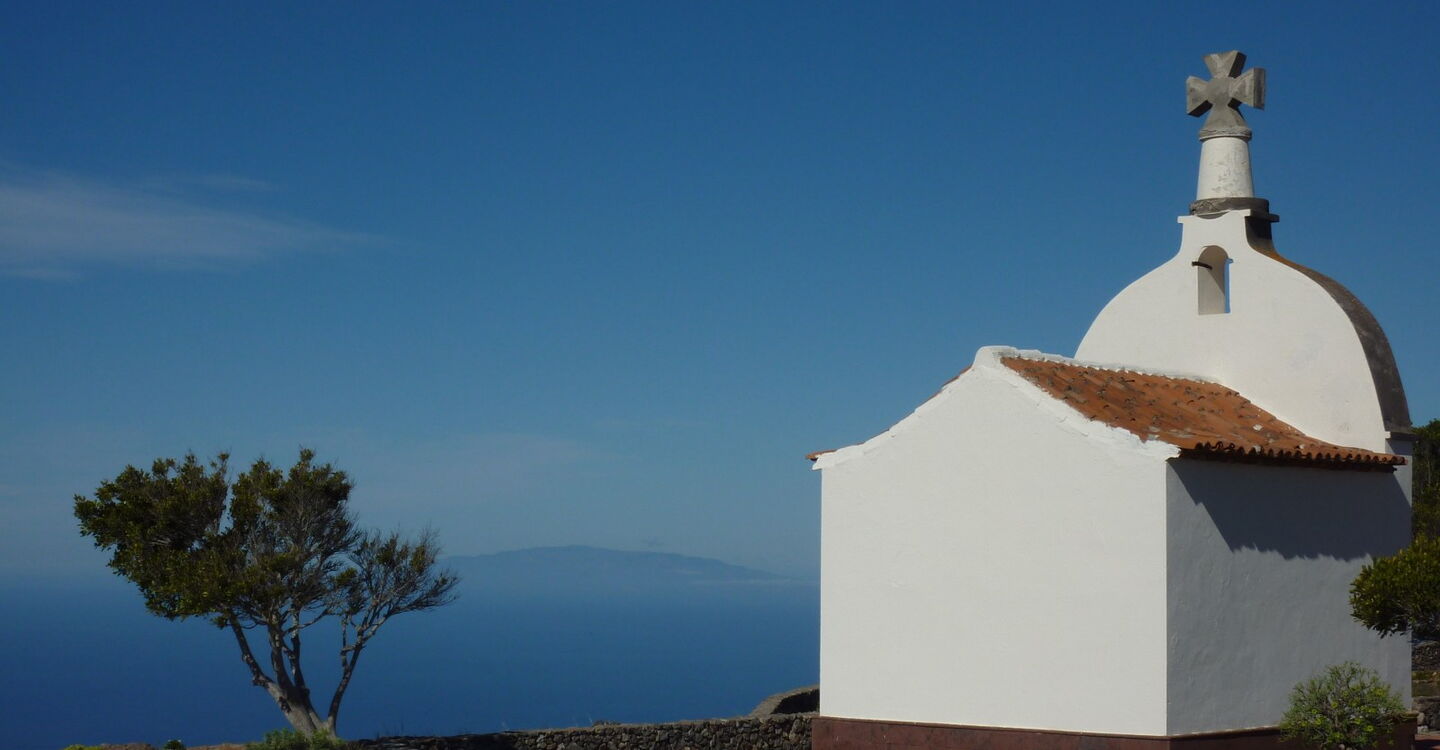 Nach 80 m folgen wir rechts der Ausschilderung Richtung (02) Ermita de San Isidro Labrador (803 m), bis wir auf einen Parkplatz treffen. Nach weiteren 500 m auf einem gepflasterten Weg haben wir den Mirador de Tagaragunche auf der Montaña del Calvario 806 m und die Ermita de San Isidro Labrador erreicht. An dieser Stelle wachte ein Posten, um nach Piraten Ausschau zu halten oder in Kriegszeiten vor Angreifern zu warnen. Bei guter Sicht ergeben sich atemberaubende Fernblicke: Im Osten angefangen sieht man den Teide auf Teneriffa, bei besonders guter Sicht Gran Canaria, San Sebastián, den Flughafen von La Gomera, die vorgelagerten Bergrücken auf La Palma und El Hierro. Nach dem Abstieg, wir befinden uns bereits auf der Asphaltstraße, biegen wir nach 80 m auf den links beginnenden Pfad ab. Auf dem Camino verlieren wir schnell an Höhe und befinden uns jetzt direkt unterhalb der Montaña del Calvario.