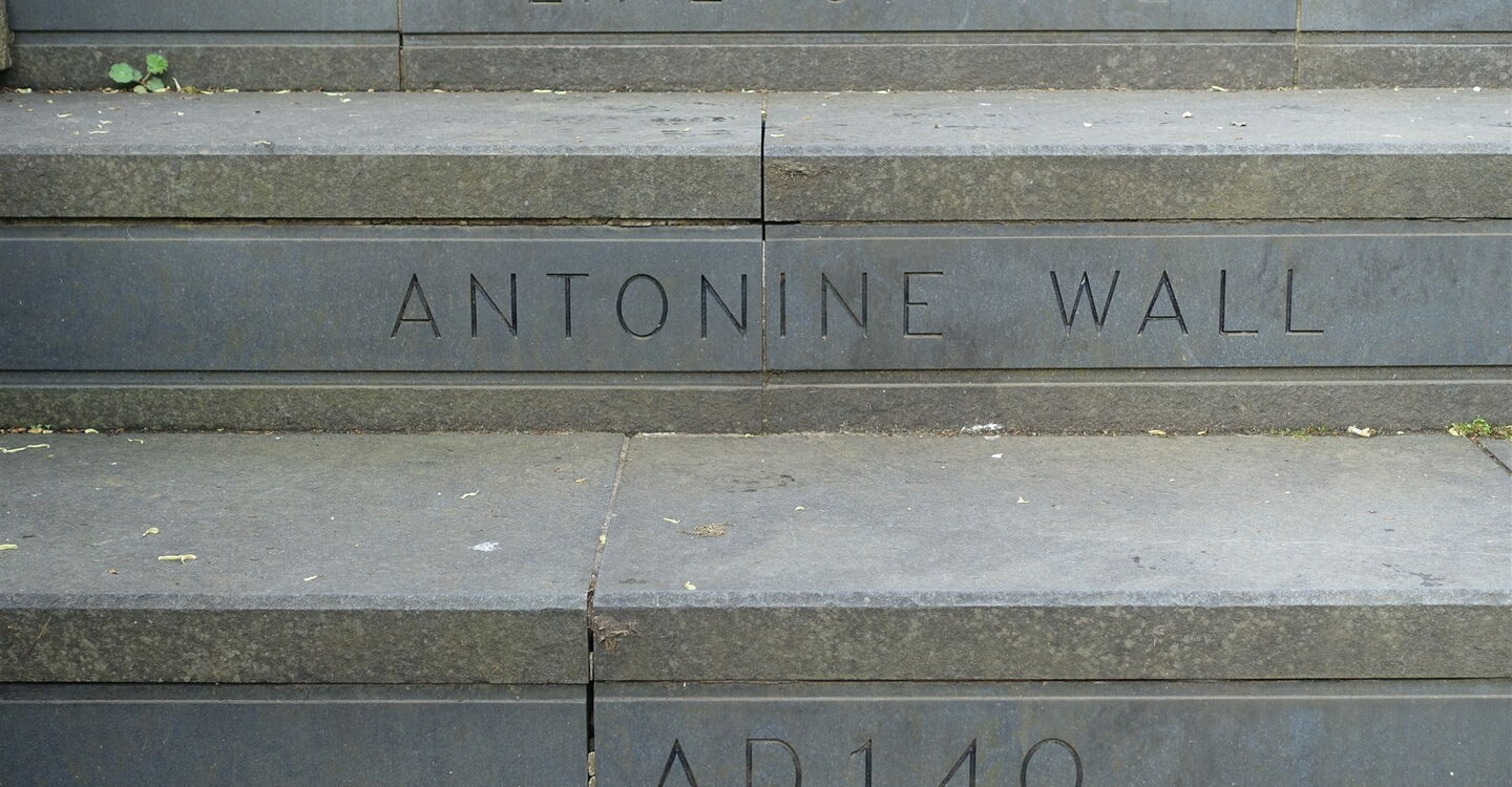 Bei Twechar überqueren wir die Schleuse nach rechts und folgen nach 280 m links dem Fußweg Richtung 03 Bar Hill (156 m). Nach kurzem Aufstieg biegen wir links in den Fußweg ein, dieser für uns direkt zu den Grundmauern eines der 27 Kastelle mit Wachtürmen, dem Osttor und den Überresten des Hauptquartiers. Die Kastelle standen im Abstand von jeweils 2 römischen Meilen, das entspricht etwa 3 km. Wir folgen dem weiterführenden Wanderweg, bis dieser endet und wir links auf einer Piste weitergehen.