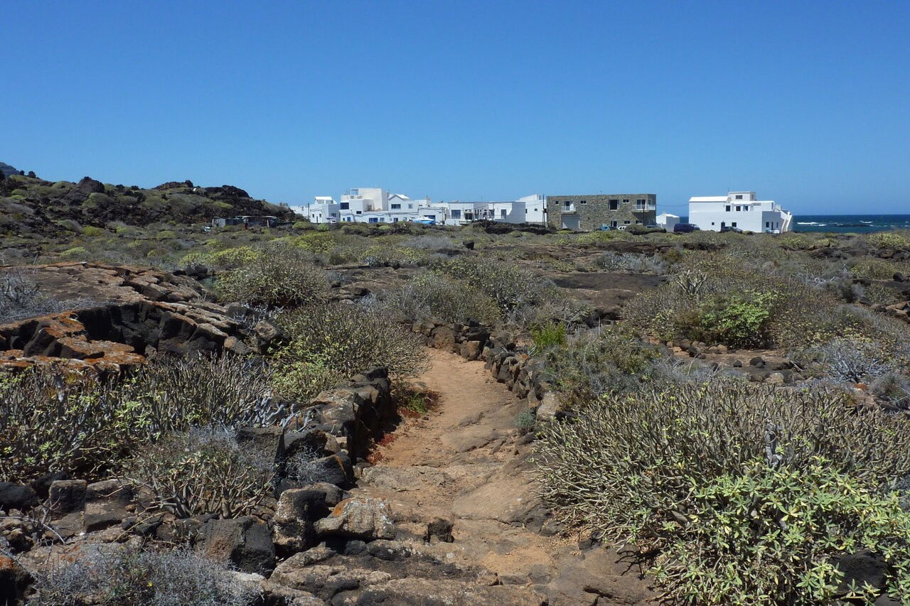 Unsere Tour startet in Orzola, der nördlichsten Ortschaft von Lanzarote, die am Rande des Malpais de la Corona liegt. Die Lavaströme des Vulkans Monte Corona bahnten sich vor 20.000 Jahren ihren Weg nach Osten. Auf diese Weise entstand ein riesiges Lavafeld - die Malpais de la Corona -, das heute ein Naturdenkmal ist. Auf einem Küstenpfad geht es zum besonders sehenswerten Playa Charca de la Novia, wo die schwarzen Lavaströme auf weiße Sandstrände im blauen Atlantik treffen. Im weiteren Verlauf queren Sie die Malpais de la Corona und können hautnah erleben, dass die Oberflächen des Lavastroms derart zerklüftet sind, dass diese nicht landwirtschaftlich genutzt werden können.