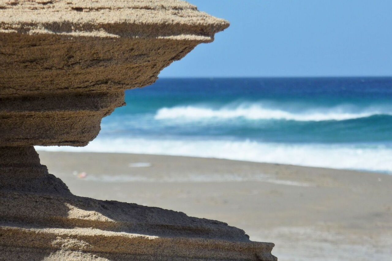 Ohne Frage, die Anfahrt mit dem Pkw hat es in sich. Aber die Belohnung folgt zugleich, ein Strandtag in der absoluten Einsamkeit der Westküste der Jandia-Halbinsel. Über 1,5 km Länge erstreckt sich der feine, hellbraune Sandstrand unterhalb der imposanten, bis zu 800 m hoch aufragenden Felsformationen – den höchsten Erhebungen der Insel. An 80 % aller Tage bläst der Passatwind und befördert die milde Seeluft in die Atemwege. Ein weiteres besonderes Naturschauspiel sind die 36 m hohe, erstarrte Felssäule des Roque de Moro, die vielen Sandsteinobjekte und die Intarsien auf den Felsen. Eine Entdeckungsreise für die ganze Familie.