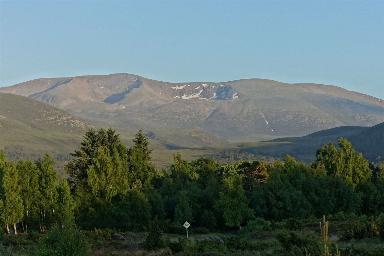 Nach 8,5 km allmählicher Annäherung beginnt nun endlich der richtige Aufstieg, der zunächst recht steil ist. Dabei ergeben sich wunderschöne Fernblicke in die Bergwelt der Cairngorms. Ein Pfad ist immer gut auszumachen und nach einem kurzen Abstieg erreicht man das flache Gipfelplateau des 03 Sron Na Lairige (1184 m). Es folgt ein kurzer Abstieg zu einer Einsattelung, um dann auf dem zunächst breiten Grat des Braeriach aufzusteigen.