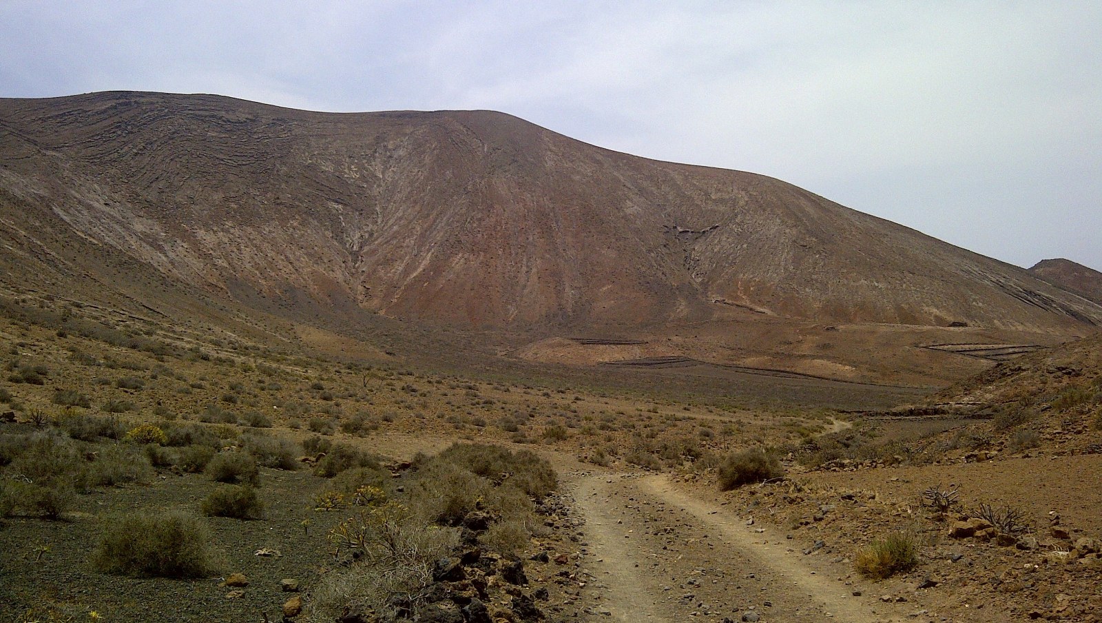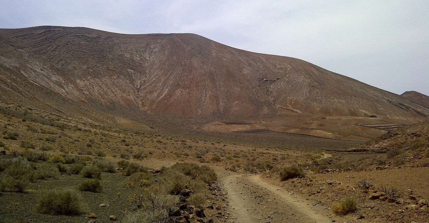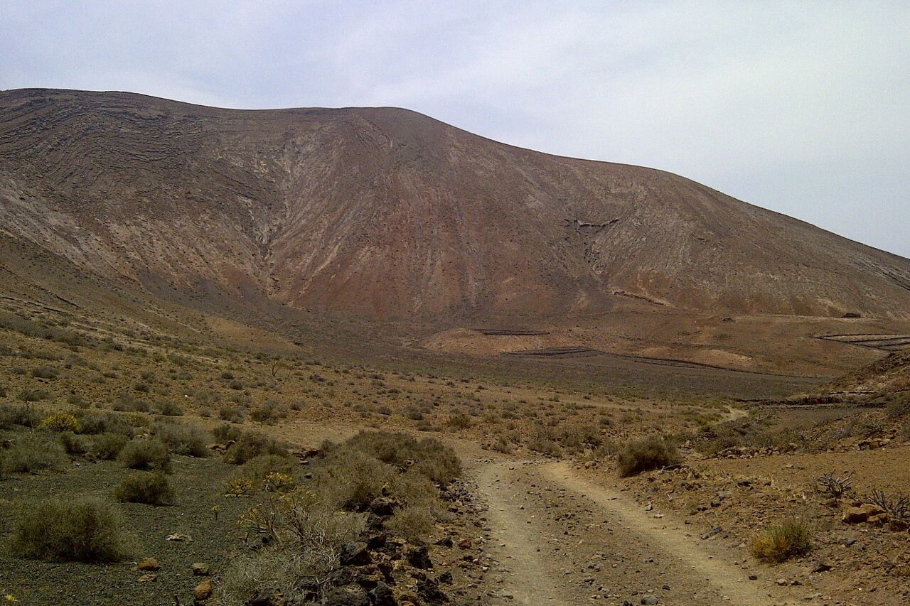 Wieder auf dem hellbraunen Vulkangestein angekommen, gehen wir links am Fuße der (05) Montaña Caldereta (217 m) entlang, bis ein Durchbruch im Vulkan den Blick ins Innere freigibt. Nach einer Explosion des Vulkans hat sich an dieser Stelle seine Magmakammer entleert. Von hier aus gehen wir 90 m in nördlicher Richtung, bis wir auf die Schotterstraße treffen. Links führt der Wegrichtung Mancha Blanca. Wir gehen links, queren noch einmal den Lavastrom und wandern entlang der Caldera Blanca, bis wir den Ausgangspunkt erreichen.