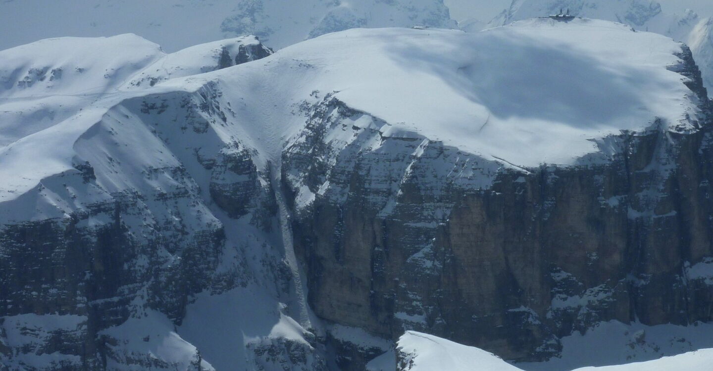 Mein GPS hat in der Scharte versagt. Aber einmal drin, gibt es keinen anderen Weg mehr als hinunter. Die Abfahrt führt über einen Nordhang. Folgende Ausrüstung wird empfohlen: Produkte für alpine Sicherheit im Schnee, Freerideski, Klettergurt mit 20m Kletterseil, Steigeisen und Pickel und Skitourenhelm. Es empfiehlt sich die Einkehr in das Rifugio Maria bei der Bergstation, welches nach Maria Piaz, der Pionierin des Tourismus am Pordoipass, benannt wurde. Beste Jahreszeit: Januar bis April. Uns erwarten kurze Stücke mit bis zu 50° Hangneigung.