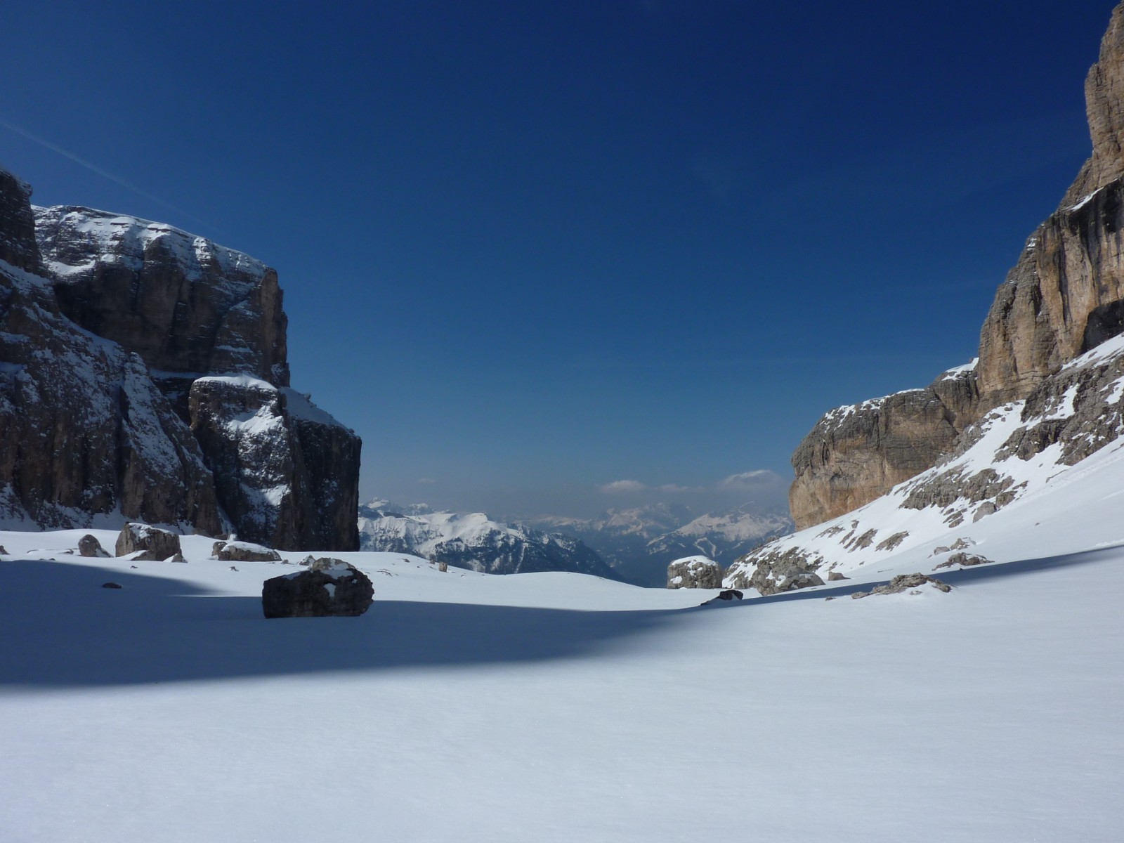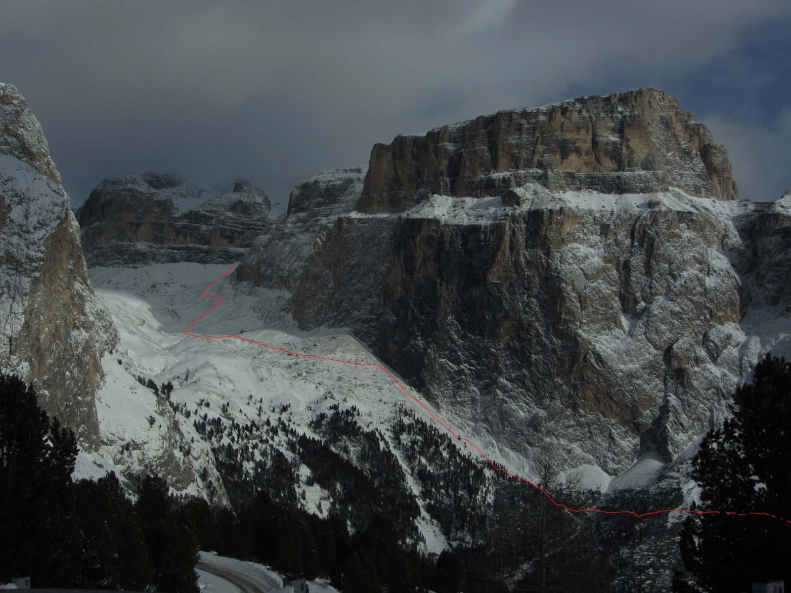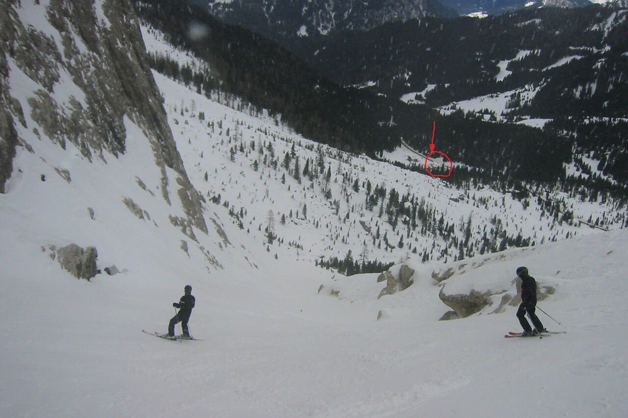 Wenn noch keiner die Strecke gefahren ist, ist die Orientierung ab den Latschenkiefern nicht so einfach. Die Abfahrt führt über einen Nordhang und Westhang. Folgende Ausrüstung wird empfohlen: Produkte für alpine Sicherheit im Schnee, Freerideski und Skitourenhelm. Es empfiehlt sich die Einkehr in das Rifugio Maria bei der Bergstation, welches nach Maria Piaz, der Pionierin des Tourismus am Pordoipass, benannt wurde. Beste Jahreszeit: Januar bis April. Uns erwarten kurze Stücke mit bis zu 35° Hangneigung.