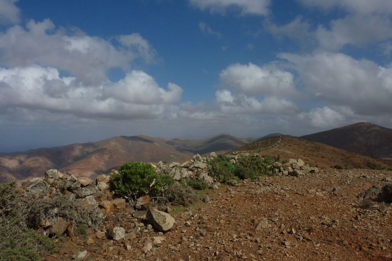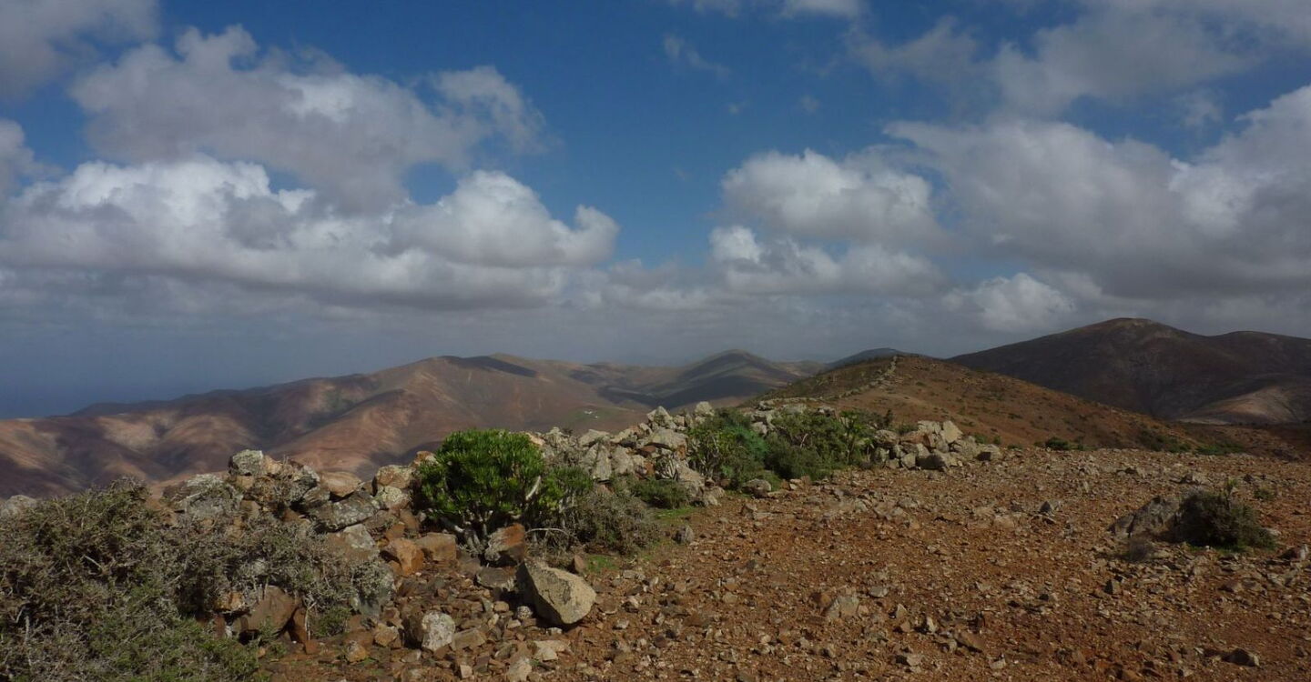 Definitiv eine der schönsten Wanderungen im mittleren Westen Fuerteventuras und dazu noch eine TOP-Einkehrmöglichkeit mit der Casa de la Naturaleza. Nach der Besteigung des zehnthöchsten Berges der Insel folgt eine spannende Wanderung durch das Barranco de la Madre del Agua. Vereinzelt plätschern Quellen, kleinere Gumpen werden umlaufen, weitere kleine Flüsse nähren den Hauptstrom – dabei fräst sich der Fluss immer tiefer in seine Umgebung. Es ist eines der wenigen Barrancos auf der Insel, die ganzjährig Wasser führen. An seiner Mündung erlebt man wie in einer Oase zwitschernde Vögel zwischen Palmen, Schilf und Tümpeln. Und dann führt der Weg noch vorbei an einer Wallfahrtskirche, umgeben von mächtigen Basaltfelsen.