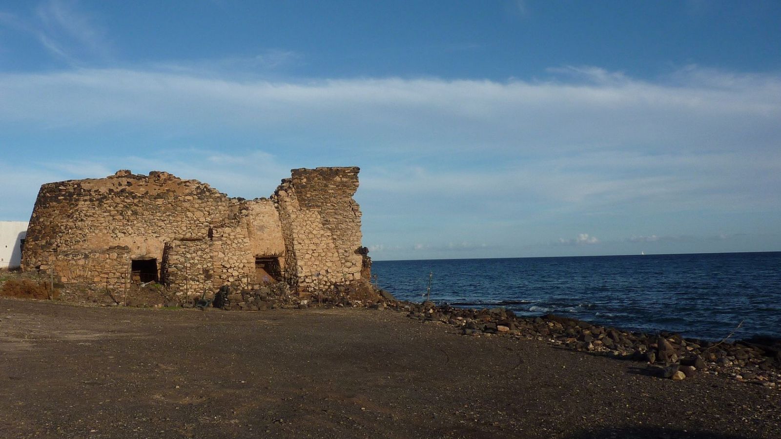 Nach 50 m biegen wir links auf die Schotterpiste ab, um bei der nächsten Weggabelung links den Pfad zu nehmen, der uns oberhalb der Küste zur Bucht und zum Barranco de la Torre führt. Schon aus der Entfernung sehen wir die beeindruckenden (03) Kalkbrenneröfen (8,1 m). Noch einmal zur Erinnerung: Kalk ermöglicht vielfältige Anwendungen als Putz mit Sand oder Schlamm, um Bauten wasserdicht zu machen. Nach der Erfindung des Zements ging die Ära der Kalköfen zu Ende.