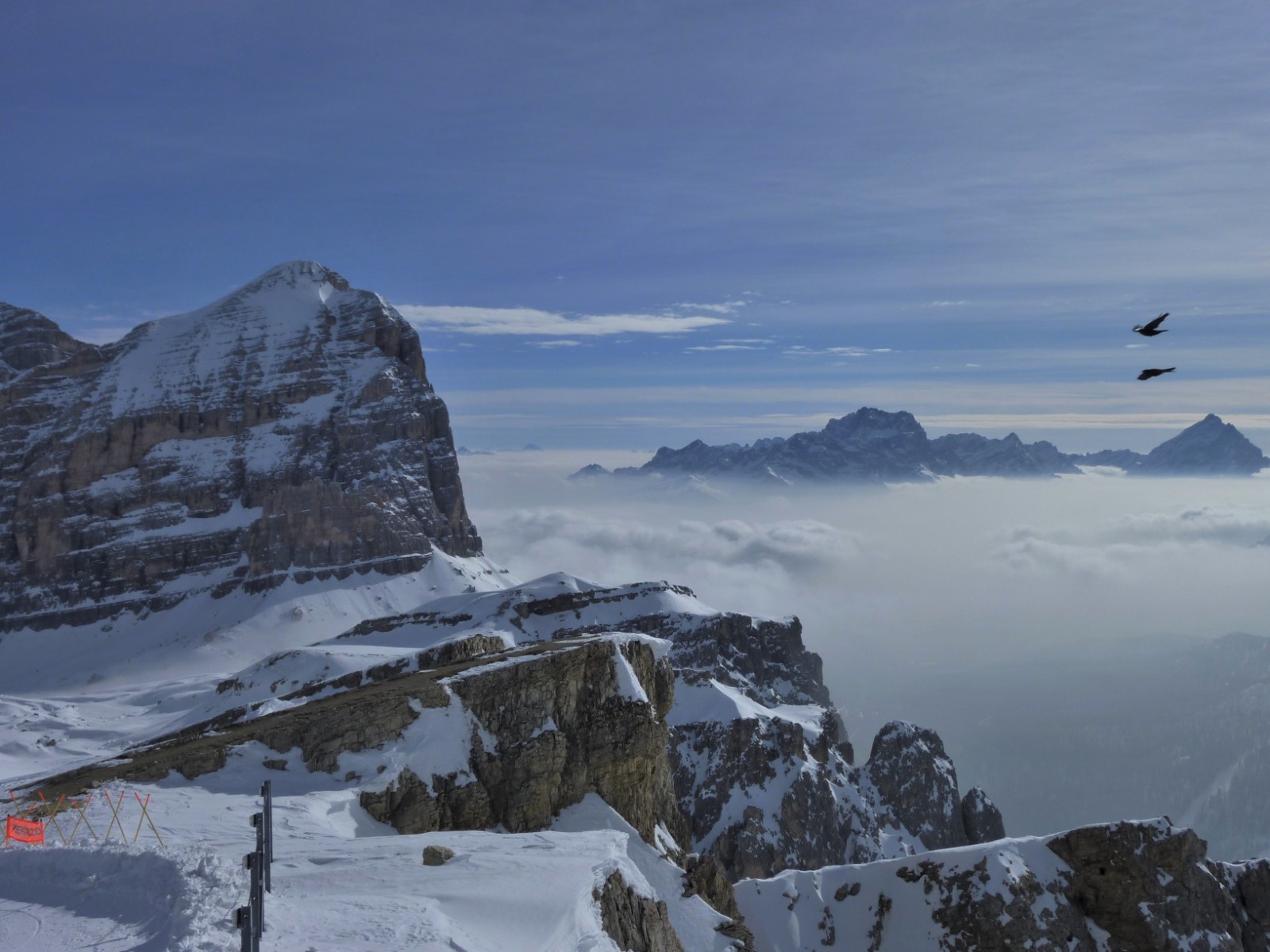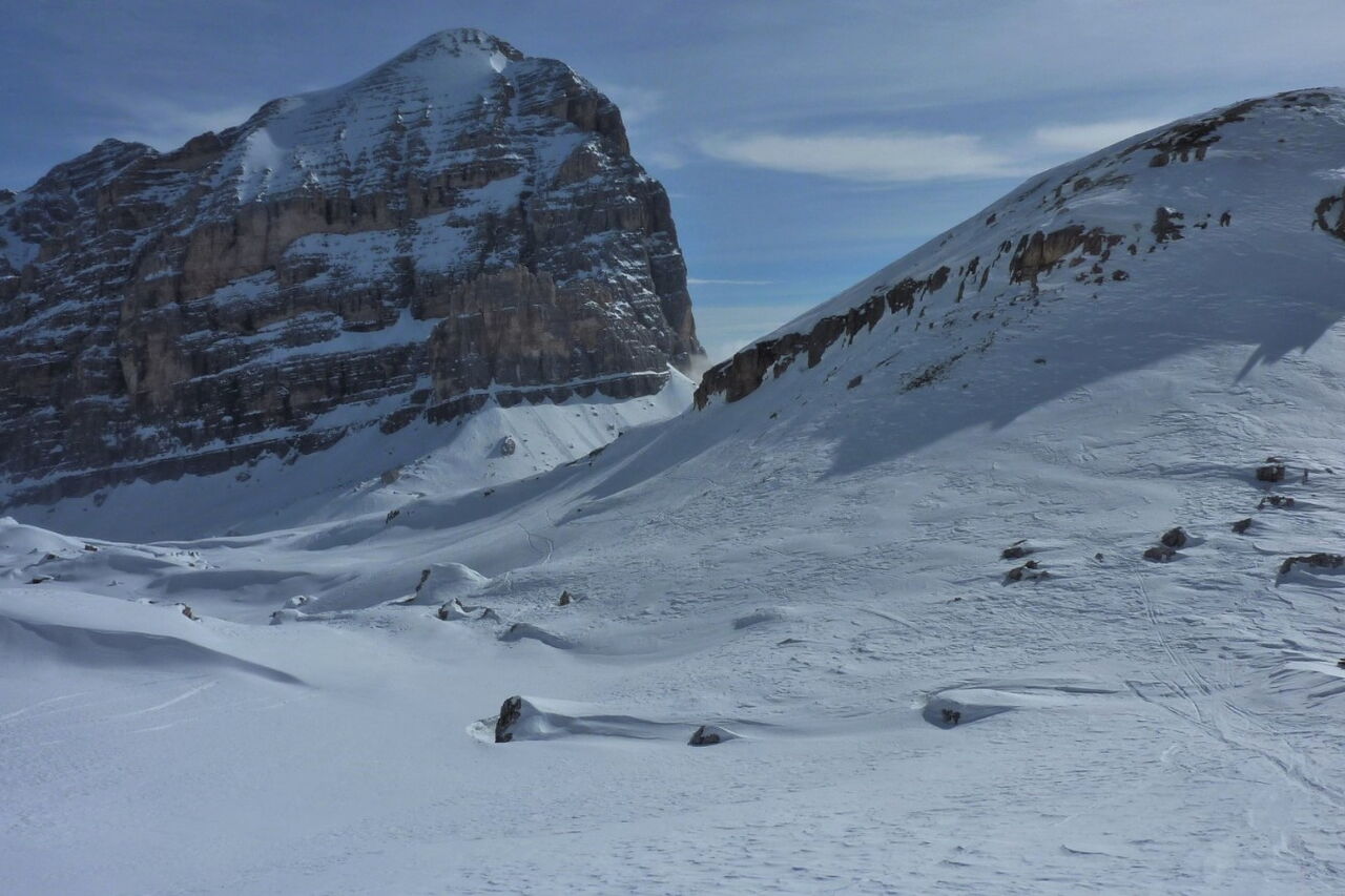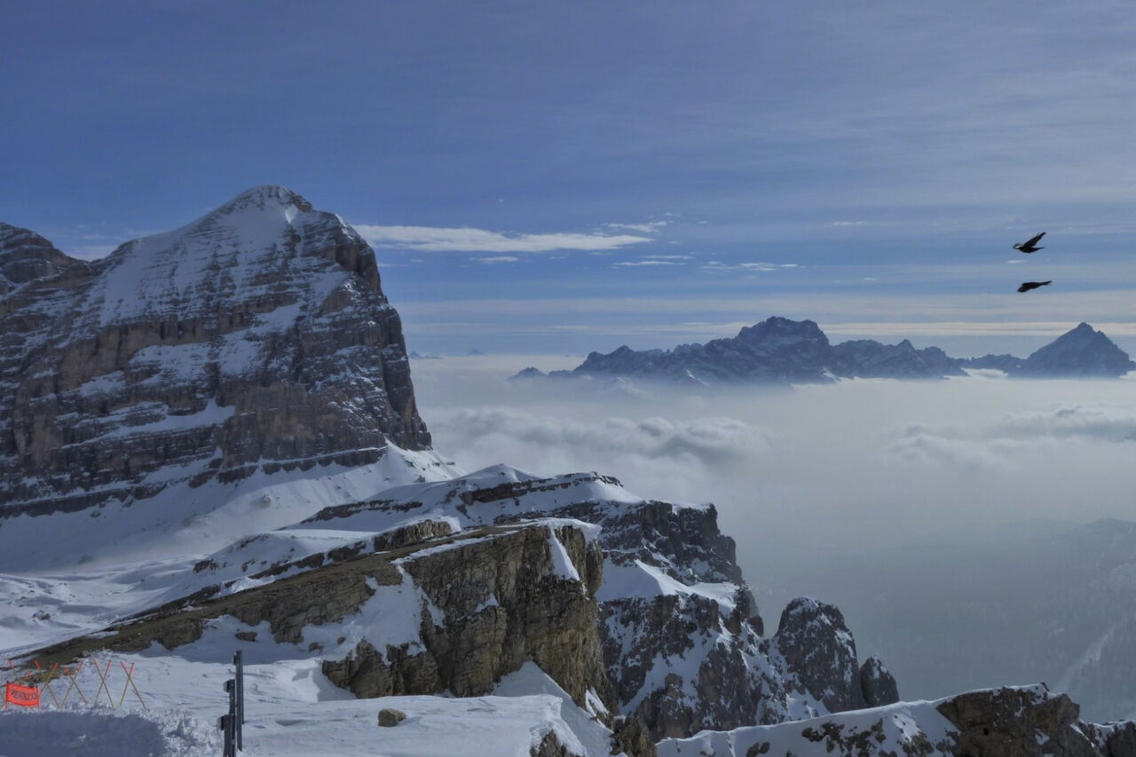 Der 1956 durch die Olympischen Winterspiele bekannt gewordene Ort Cortina d'Ampezzo liegt in traumhafter Landschaft, umgeben von den Gipfeln der Tofana di Mezzo 3243 m, Monte Cristallo 3218 m und Punta Sorapis 3205 m. Bisher gehört die Dolomitengemeinde zur venetischen Provinz Belluno und nicht zu Südtirol, trotzdem wird auch hier Ladinsch gesprochen. Ohne Frage in Cortina d'Ampezzo trifft man Gäste aus der ganzen Welt und besonders auf der Flaniermeile im Dorfkern. Die drei Skigebiete Faloria Cristallo Mietres, Tofan Ra Valles und Lagazuoi 4 Torri, mit 38 Bergbahnen und 120 Pistenkilometer, sind absolute Spitzenklasse. Wir sind aber gekommen um die Variantenabfahrten in dieser Region zu erkunden.
