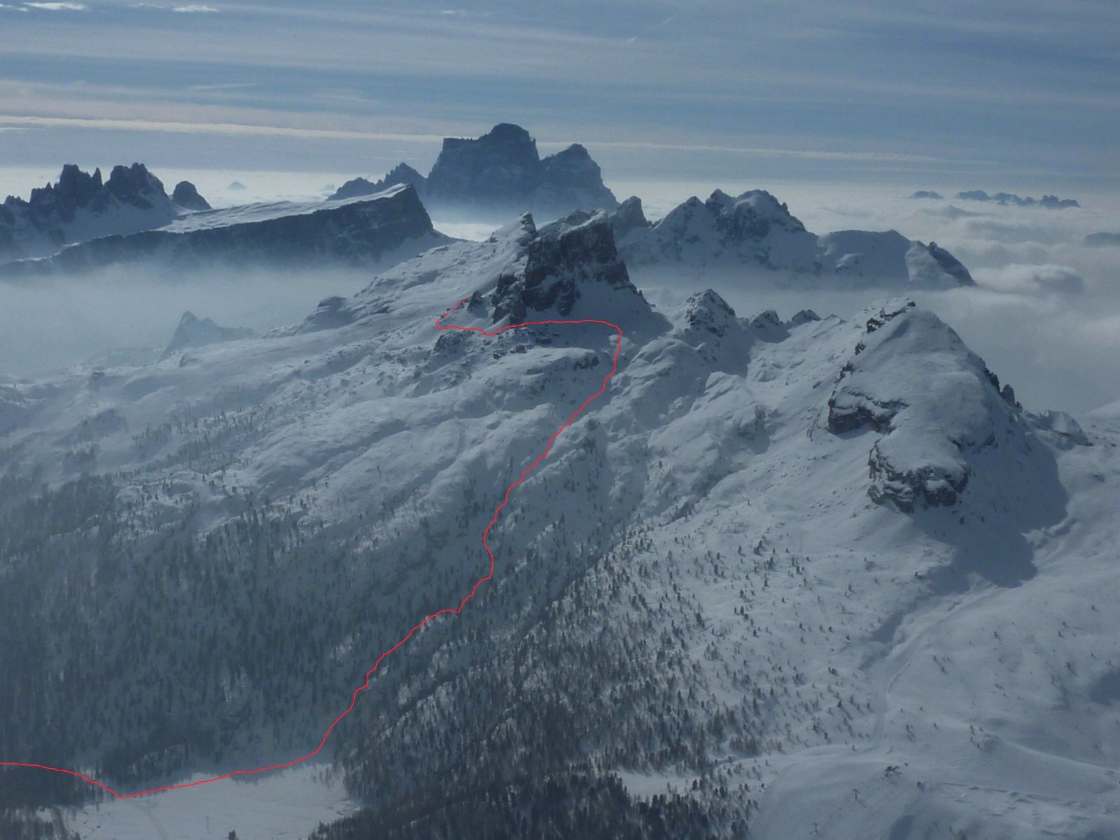 Der 1956 durch die Olympischen Winterspiele bekannt gewordene Ort Cortina d'Ampezzo liegt in traumhafter Landschaft, umgeben von den Gipfeln der Tofana di Mezzo 3243 m, Monte Cristallo 3218 m und Punta Sorapis 3205 m. Bisher gehört die Dolomitengemeinde zur venetischen Provinz Belluno und nicht zu Südtirol, trotzdem wird auch hier Ladinsch gesprochen. Ohne Frage in Cortina d'Ampezzo trifft man Gäste aus der ganzen Welt und besonders auf der Flaniermeile im Dorfkern. Die drei Skigebiete Faloria Cristallo Mietres, Tofan Ra Valles und Lagazuoi 4 Torri, mit 38 Bergbahnen und 120 Pistenkilometer, sind absolute Spitzenklasse. Wir sind aber gekommen um die Variantenabfahrten in dieser Region zu erkunden.