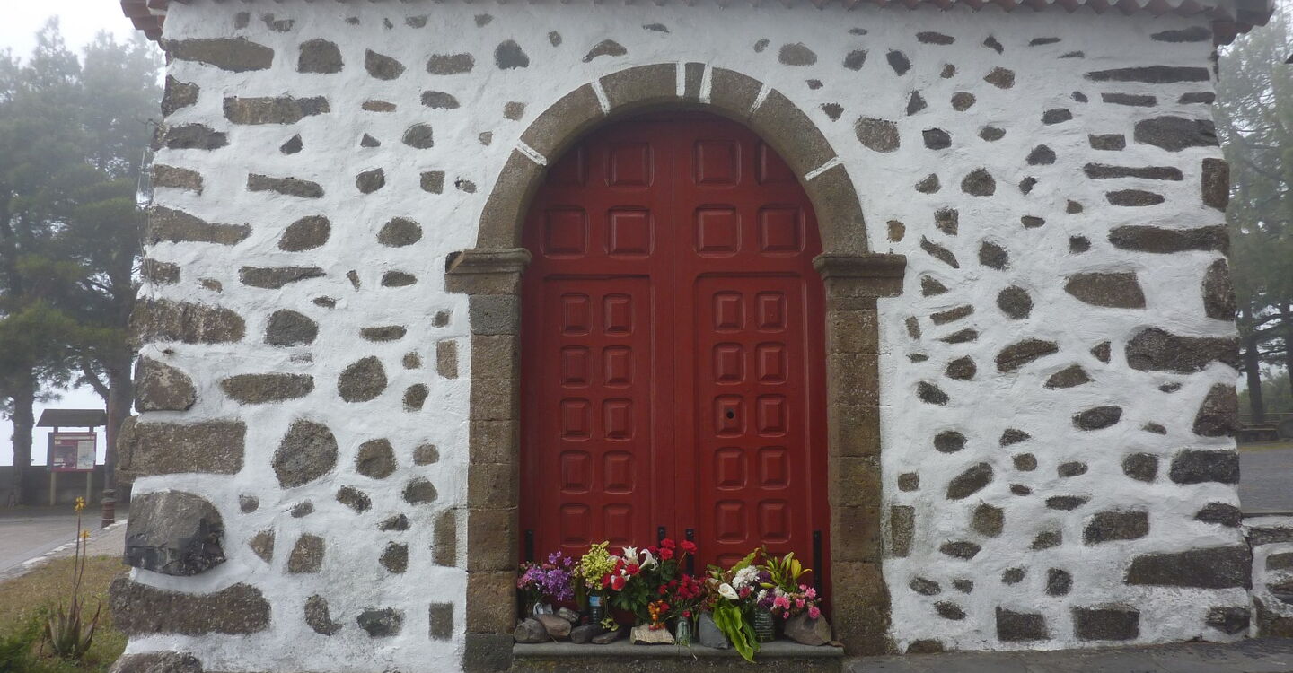 Wir stoßen auf eine Asphaltstraße, der Weg führt vorbei an der (05) Ermita de Nuestra Señora de Las Nieves (1138 m) und nach weiteren 700 m verlassen wir die Asphaltstraße nach links. Auf einem Pfad gelangen wir zurück bis zum Ausgangspunkt an der Degollada de Peraza.