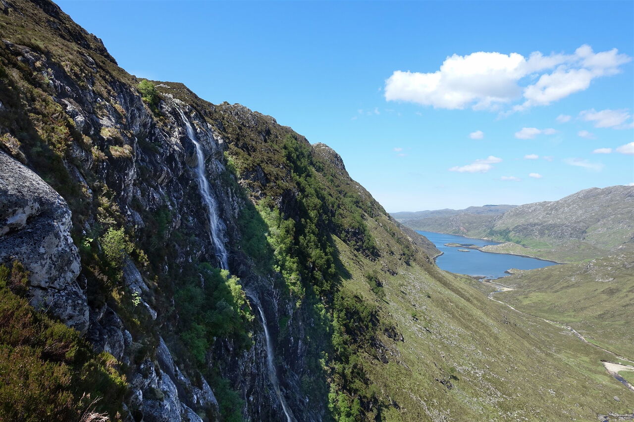 Diese Wanderung führt in die spektakulären Berge von Assynt. Es geht vorbei an idyllisch gelegenen Seen und rauschenden Bächen sowie durch 1700–3000 Millionen Jahre altes Lewisiangestein bis zu einem perfekten Aussichtspunkt auf den höchsten Wasserfall Großbritanniens – man sieht die kompletten 200 m Fallhöhe. Danach wird ein Corbett auf einer aussichtsreichen Runde bestiegen. Der Abstieg erfolgt durch eine traumhaft schöne Landschaft, Garant für perfekte Erholung.