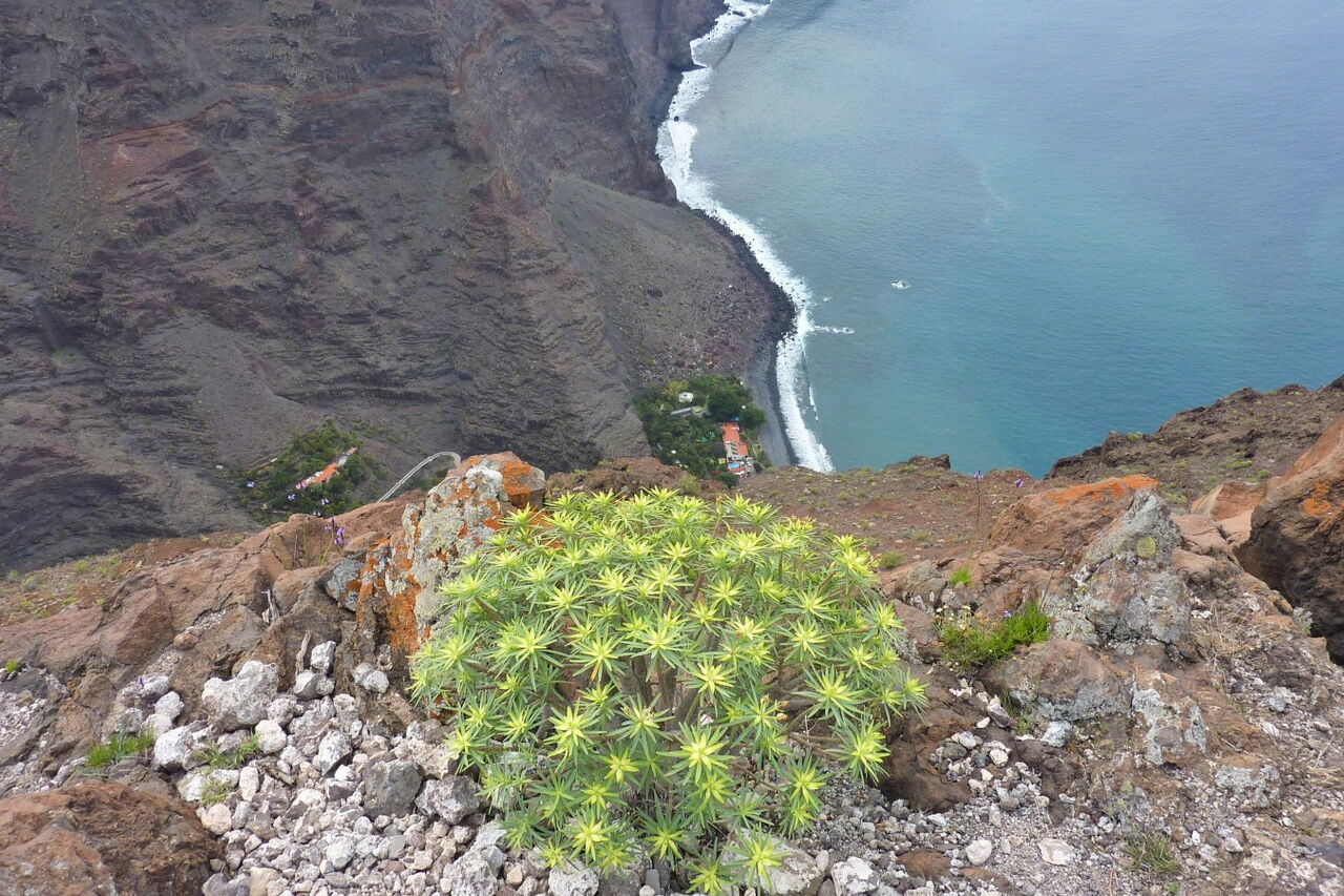 Unsere Wanderung beginnt in El Guro im oberen Valle Gran Rey. So gemütlich, wie die Tour startet, so sportlich wird sie auf dem Lechepfad - einem alten Verbindungsweg zu den Häusern und Feldern auf der Las-Pilas-Hochebene. Gegenüber der konventionellen Route sparte der Bauer auf dieser Route 600 m Entfernung und 110 Höhenmeter. Dafür wird aber die Wanderung zu einem Drahtseilakt oberhalb des Valle Gran Ray. Für unsere Mühen werden wir mit einem herrlichen Panoramaweg und einer grandiosen Aussicht auf den 500 m tiefer liegenden Küstenstreifen des Südteils der Insel belohnt. Bei guter Sicht kann man auch noch die vorgelagerten Inseln El Hierro und im Nordosten Las Palmas ausmachen.