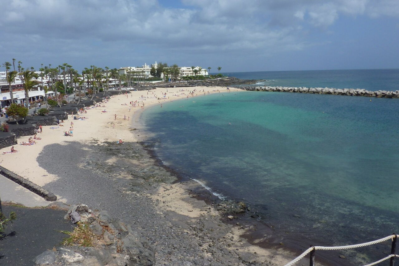 Wir passieren ein weiteres großes Hotel, das Iberostar Lanzarote Park, bis es vorbei am Hafen in die Fußgängerzone geht. Schlussendlich treffen wir auf die im Zentrum liegende (04) Playa Blanca (7 m). Dieser kleine weiße Sandstrand, direkt an der Promenade, hat dem ganzen Ort seinen Namen gegeben. Wer mag, kann sich hier sonnen, baden gehen und dann in einem der vielen Fischrestaurants essen.