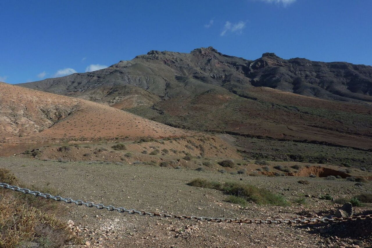 Busanbindung: keine. Mit dem Pkw fährt man 17,6 km von der Costa Calma auf der FV-2 und der FV-605 Richtung Pajara. Nachdem wir La Pared hinter uns gelassen haben, befinden wir uns nach einigen Kurven auf einer lang ansteigenden Geraden. Schon bald sehen wir auf der rechten Seite etwas tiefer liegend einen künstlich aufgeschütteten Staudamm. Zwischen zwei Steine gespannt, versperrt dort eine Kette eine beginnende Schotterpiste. Nicht ganz einfach, aber entlang der Kette kann man das Auto parken. Geokoordinaten Parkplatz: 28.272329 -14.171220.