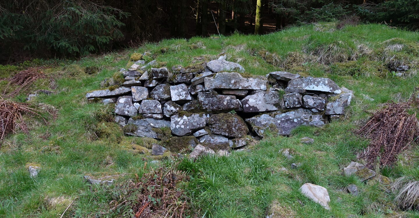 Nach weiteren 400 m erreichen wir eine baumfreie Fläche inmitten des Waldes. Eine Tafel liefert Informationen über das 04 Iron Age Fort (97 m), eine kleine Siedlung aus der Eisenzeit.