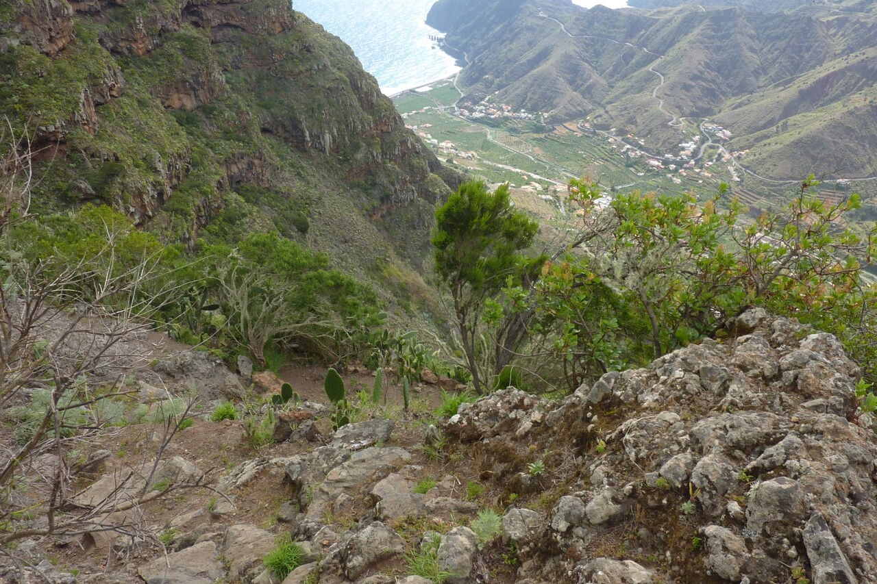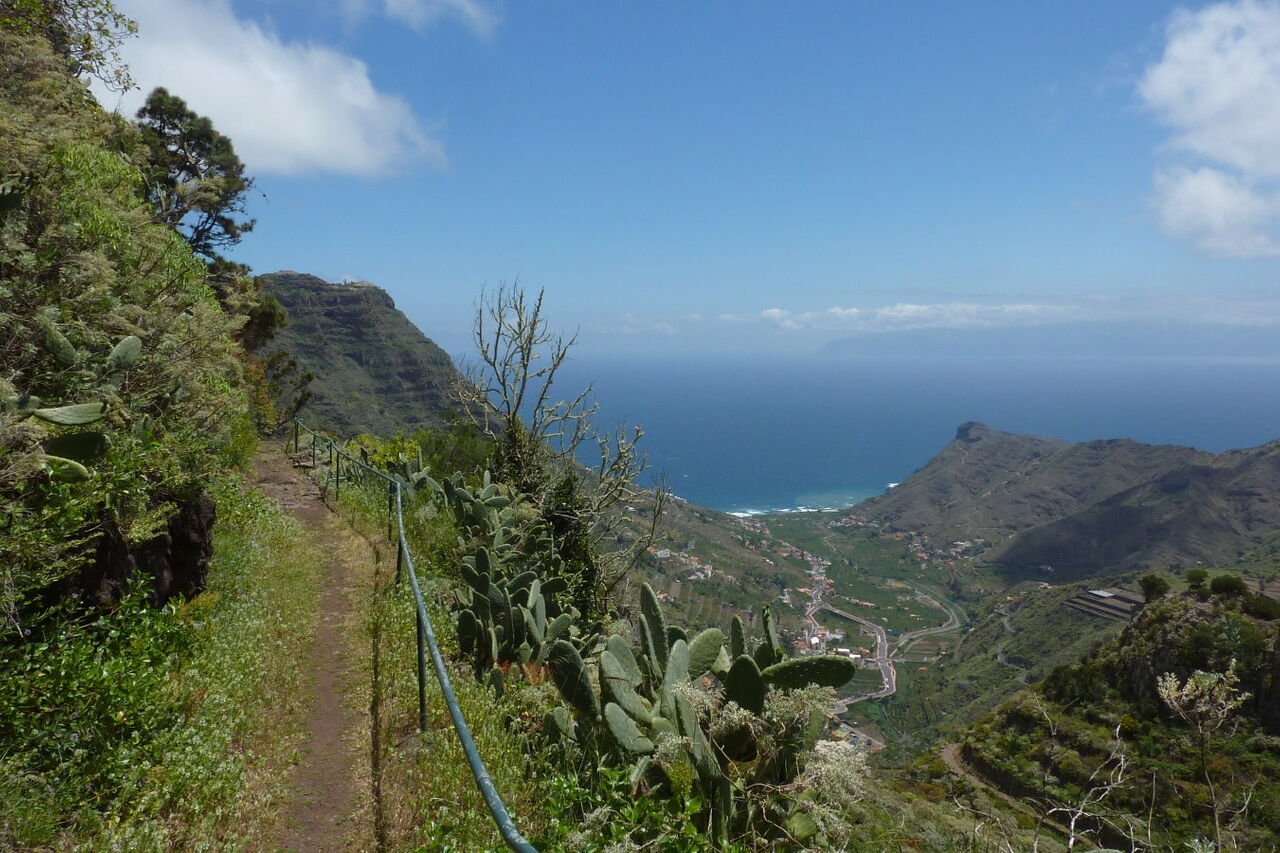 Die Wanderung startet beim Ethnografischen Museum in Hermigua - der Bananenhauptstadt von La Gomera. Über terrassenförmigen Plantagen führt der Anstieg bis zum extrem steilen und spektakulären Aufstieg auf den Lomo Gordo, wo man mit unvergesslichen Blicken über das 6 km lange Ober- und Unterdorf von Hermigua - bis hin zum Atlantischen Ozean - belohnt wird. Es folgt ein Höhenweg für Naturliebhaber, bis der Weg sich wieder gen Tal neigt und wir eine weitere Sehenswürdigkeit besuchen: die Ermita de San Juan (Las Cabezadas) aus dem letzten Jahrhundert. Durch die exponierte Lage 240 m oberhalb von Hermigua ist dies ohne Zweifel eine Must See Location.