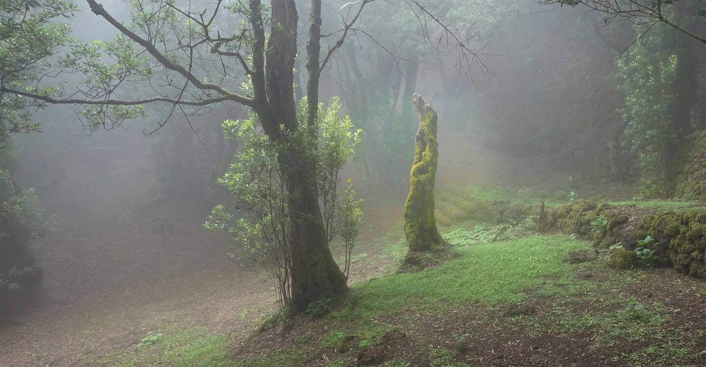 Weinanbau ist auf El Hierro immer noch ein zentraler Wirtschaftsfaktor, vor allem an den vulkanischen Steilhängen des fruchtbaren El-Golfo-Tals. Auf unserer Wanderung erleben wir, dass ab etwa 600 m Höhe die Rebstöcke vom üppigen immergrünen Lorbeerwald abgelöst werden. In dieser unteren Vegetationszone des Nebelwaldes wachsen mächtige Maronenbäume, Walnussbäume und vereinzelte Mocanbäume. Der Aufstieg bis zum Gratverlauf des zentralen Bergmassivs ist mühsam, wird aber mit einem unvergesslichen Weitblick belohnt. Nichts senkt den Stresslevel zuverlässiger als der Aufenthalt in freier Natur – auf geht‘s.