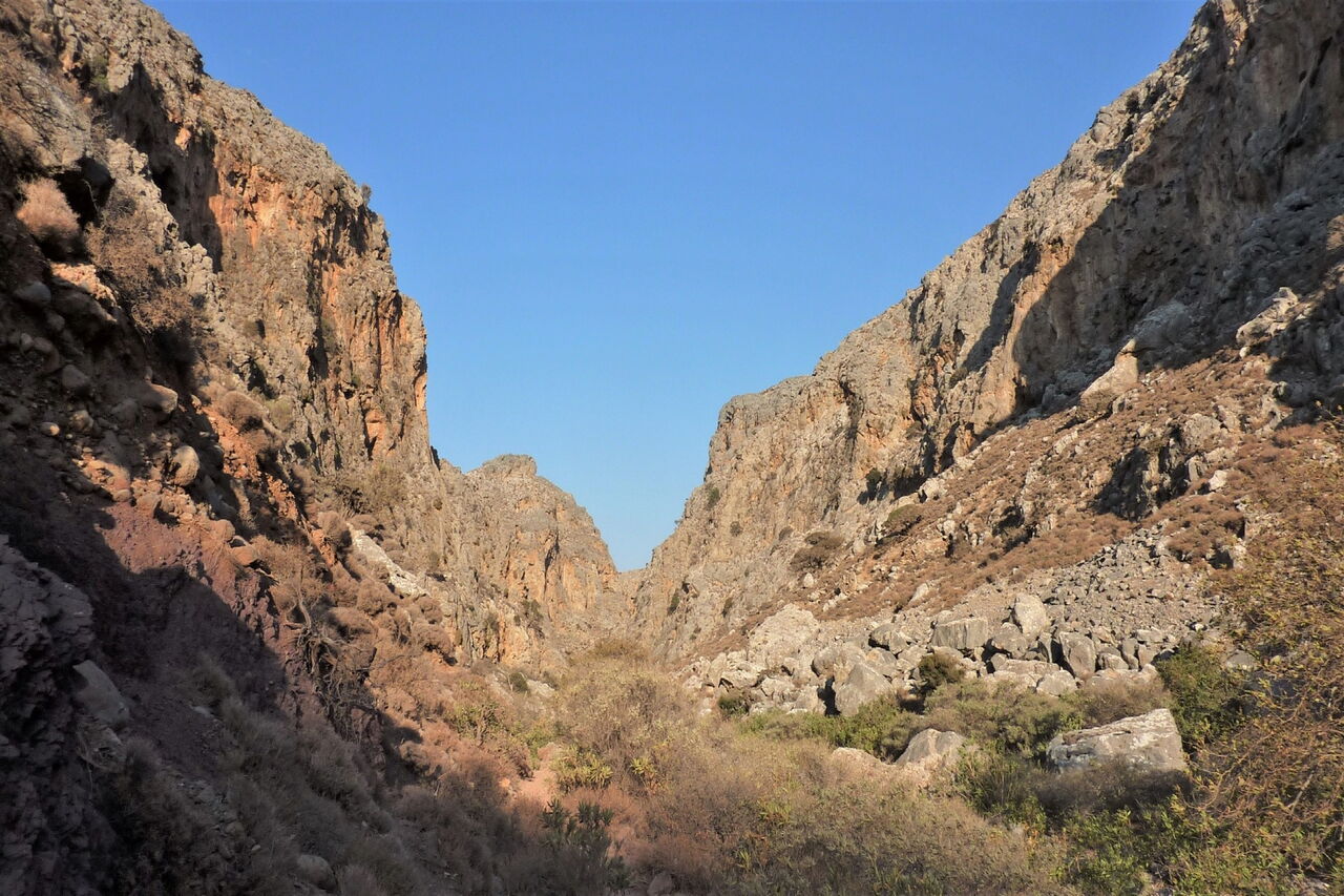 Die Schlucht der Toten gehört mit zu den interessantesten Schluchten auf Kreta und befindet sich am Anfang oder am Ende des europäischen Fernwanderwegs E4. Es geht durch eine fantastische Landschaft, denn der Canyon hat sich tief in seine Umgebung eingefräst und wird durch bis zu 200 m hohe dunkelrote Felswände begrenzt. Mit dem minoischen Palast von Kato Zakros erwartet uns zudem ein besonderes kulturelles Highlight. Diese faszinierende Wanderung verknüpft kulturelle und landschaftliche Höhepunkte – ein bleibendes Erlebnis.