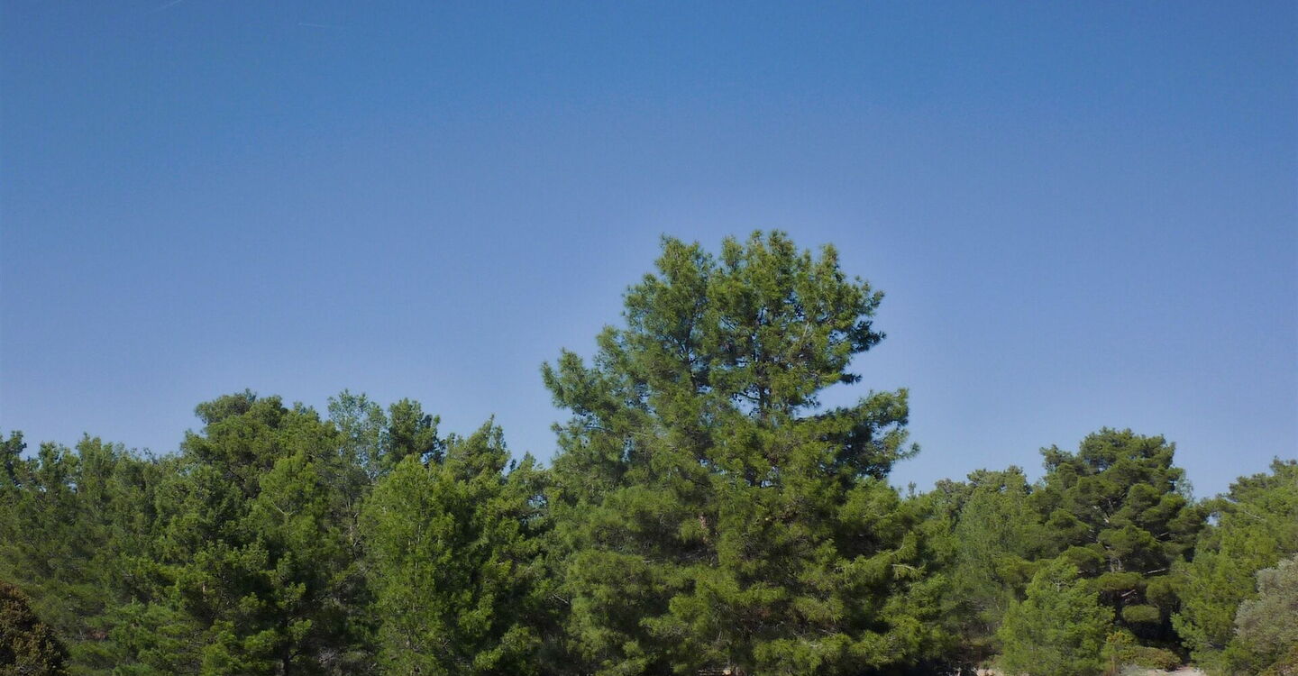 Die Piste endet an einem Zaun, links oberhalb steht ein weißes Haus. Hier gehen wir (02) rechts (122 m) auf der Piste weiter und kommen an einem weiteren Haus direkt neben der Piste vorbei. Wir passieren prachtvolle Kiefern und ignorieren im weiteren Verlauf zwei linke und zwei rechte Abzweiger.