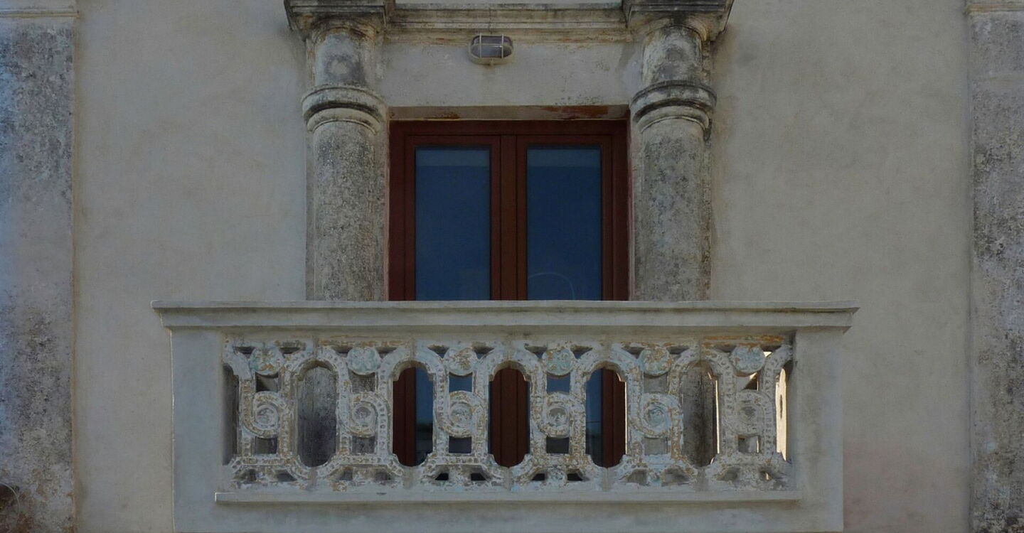 Wir gehen nun am östlichen Ortsrand entlang des Geländers. Dieses leitet uns automatisch in eine weitere Gasse, die nach einer Rechtskurve in eine Straße mündet, auf der wir halb rechts ein Stück bergauf gehen und nun 80 m bis zur (04) Taverne (103 m) zurücklegen. Direkt dahinter befindet sich ein kleiner Platz. Bei dem Haus mit lila angemalten Türen und Fensterläden gehen wir links und nach 30 m gleich wieder links.