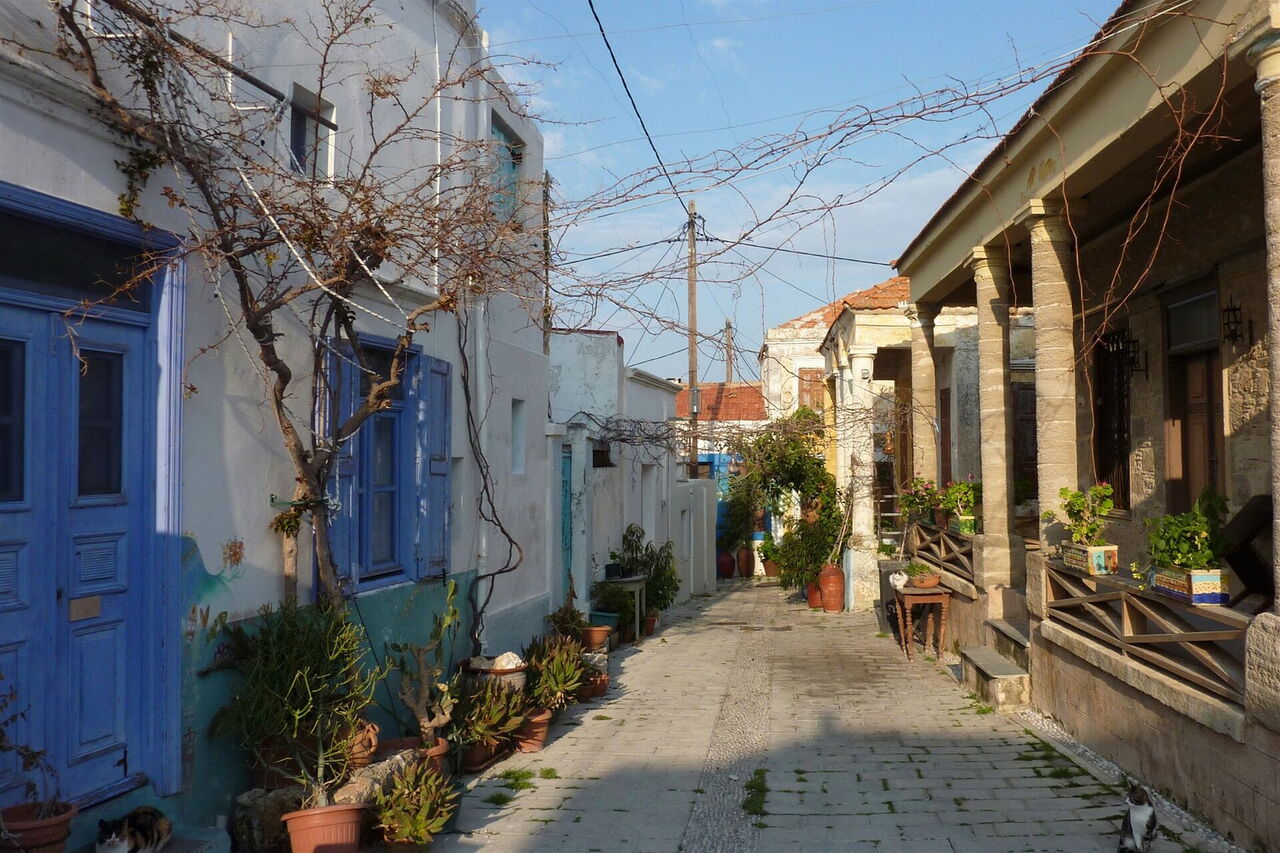 Einfacher Spaziergang durch Gassen. Leicht verliert man in dem Häuserlabyrinth die Orientierung. Art des Weges: 50 % aus Asphaltstraßen und 50 % gepflasterte Gassen. Ausrüstungsempfehlung: keine. Einkehr: die Taverne von O Giannis. Sie befindet sich auf der Route, ist aber nur abends geöffnet. Beste Jahreszeit für diese Tour: April bis Oktober. Tipp für den Fotografen: Im späten Abendlicht ergeben sich grandiose Farbenspiele.