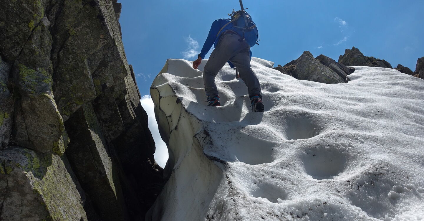 Charakter: Eine sehr schwere Wanderung durch alpines und heikles Schrofengelände. Kletterstellen bis Schwierigkeitsgrad II und häufig extrem exponiert. Da der Steig sehr häufig begangen wird, sind die Felsen extrem glatt geschliffen und werden bei Feuchtigkeit sehr rutschig. Viele ungeübte Wanderer erhöhen enorm das Steinschlagrisiko. Art des Weges: 30 % Pfad und 70 % Klettersteig. Zusatzausrüstung: Bis Ende Juni Steigeisen und Eispickel sowie ein Helm gegen Steinschlag. Ein Klettersteigset macht keinen Sinn, da man sich nicht an dicken Ketten sichern kann. Einkehr: Unterwegs keine. Beste Wanderzeit: Juni bis Oktober. Achtung! Die Begehung ist nur in der beschriebenen Richtung möglich. Bitte nicht andersherum gehen!