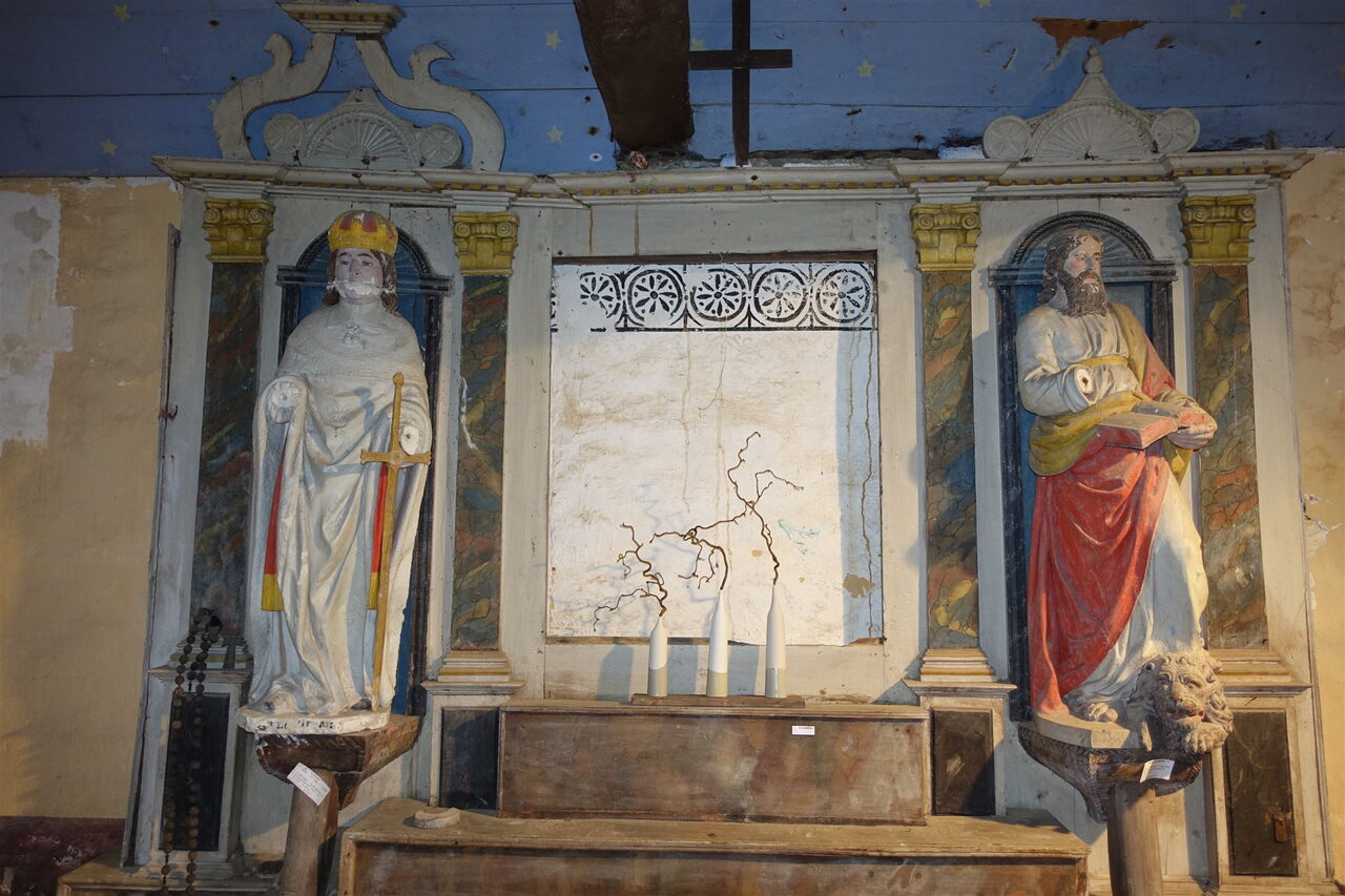 Vom Parkplatz an der Kaimauer gehen wir 100 m auf der weiterführenden Straße, um diese in der folgenden Linkskehre geradeaus zu verlassen. Wir gehen nun in Richtung der 1609 gebauten 01 Chapelle Sainta Barbe (11 m), die der heiligen Barbara geweiht ist. Sie befindet sich im Hafenviertel Toul An Hery, von wo aus Weizen nach England und Spanien exportiert wurde. Direkt vor der kleinen Kapelle wandern wir auf dem Pfad neben einem kleinen Rinnsal durch einen urigen Wald. Bei der Wegekreuzung gehen wir geradeaus weiter, bis der Pfad in eine Straße mündet, auf der wir rechts bis zu einer Kreuzung vorgehen.