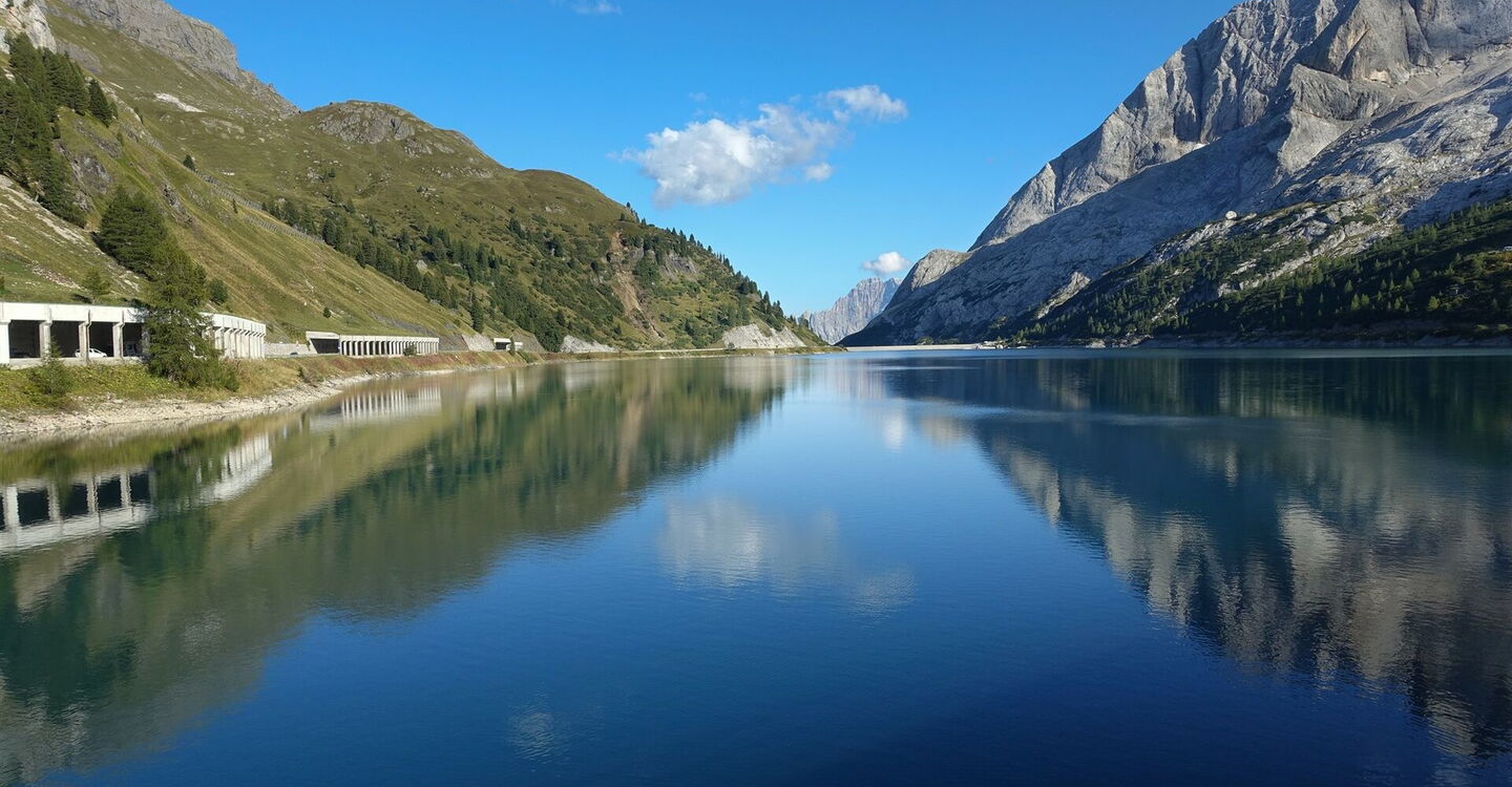 Schwierigkeitsgrad Blau (Tour 38) oder Schwarz (Tour 53), das ist hier die Frage! Bei zu erwartendem schlechten Wetter oder fehlender Klettersteigerfahrung ist es ratsam, sich gegen die Tour 53 über die 2.896 m hohe Marmolata-Scharte zu entscheiden. Stattdessen wählt man die Tour 38, die Etappe 9 von 21. Diese führt durch eine sich ständig verändernde Landschaft und zwei traumhaft gelegene Täler. Dabei eröffnen sich immer wieder umwerfende Blicke auf die omnipräsente Marmolata mit ihren steilen Wänden und mächtigen Bergspitzen.