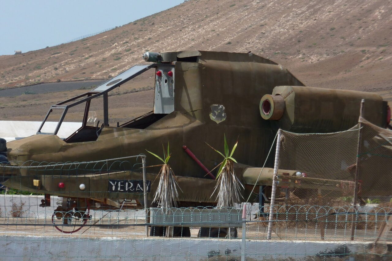 Mit der Buslinie 05 geht es von Arrecife nach Las Casitas de Femès. Mit dem Pkw beträgt die Strecke auf der LZ-2 und der LZ-702 22 km. Bereits in Las Casitas geht es vorbei an einem Hubschrauber - er steht im Vorgarten eines Hauses. Dann biegen wir bei der nächsten Möglichkeit links ab, um das Auto zu parken. GPS-Koordinaten 28.930283 -13.751083.