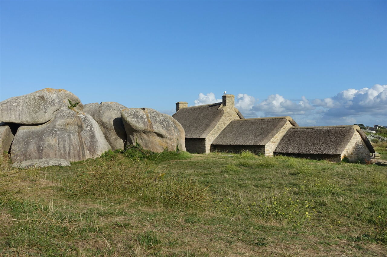 Viele Reiseführer berichten nur wenig über diese sehr erwähnenswerte Sehenswürdigkeit. Die erste Hälfte der Wanderung führt am vierthöchsten Menhir Frankreichs vorbei und verläuft entlang von Acker- und Weideflächen. Auf dem Zöllnerpfad verzaubern uns bizarr geformte Felsbrocken, Dünenlandschaften und wunderschöne Strandabschnitte – ja, schon fast therapeutische Landschaften. Der Name Meneham steht für ein altes bretonisches Dorf mit bewegter Geschichte. Ein Museumsdorf mit reetgedeckten Häusern zeigt Exponate und berichtet über die vergangenen Geschehnisse. Außerdem bietet sich die einmalige Gelegenheit, in dem geschichtsträchtigen Ambiente des urigen Restaurants Auberge de Meneham die berühmte regionale Spezialität Kig ha Farz – Fleisch und Fladen – zu probieren. Nach dem kulinarischen Genussmoment folgt der perfekte Ausklang des Tages – bei Sonnenuntergang ergeben sich traumhafte Fotomotive.