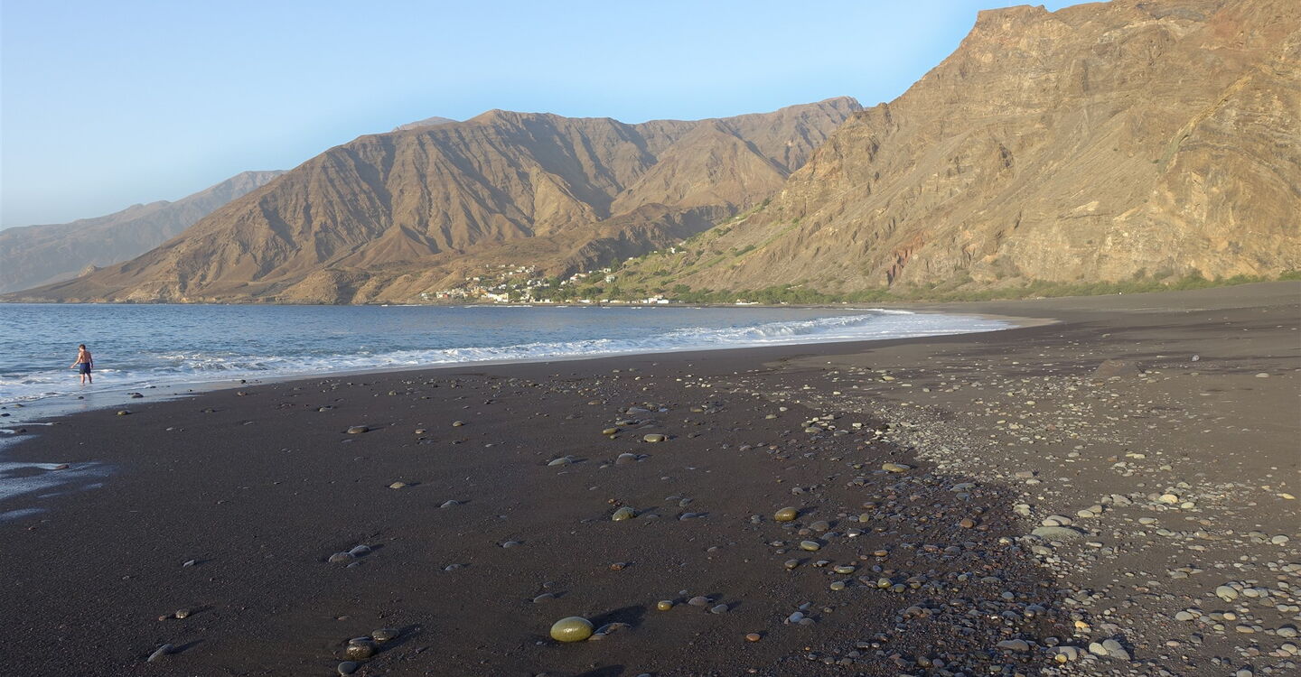 In der Vergangenheit wurde der komplette Warenverkehr mit dem Dorf über einen Caminho geregelt, eine Zufahrtsstraße gab es noch nicht. Dabei waren jedes Mal 530 Höhenmeter zu überwinden. Am Miradouro befanden sich eine große Verladestelle und eine Lagerhalle, in der die Waren auf ihren Weitertransport warteten. Der alte Caminho ist inzwischen in die Tage gekommen und wird heutzutage auch nicht mehr für Transportzwecke genutzt. Geblieben ist ein wunderschöner Wanderweg, von dem man im oberen Abschnitt einen spektakulären Blick auf den höchsten Berg von Santo Antão genießt. Nachdem man den Pass überschritten hat, führt die Tour durch eine rotbraune Wüstenlandschaft, bis zu einem der schönsten Strände von Santo Antão. Zur Blauen Stunde ist diese Runde ein ganz besonderes Erlebnis.